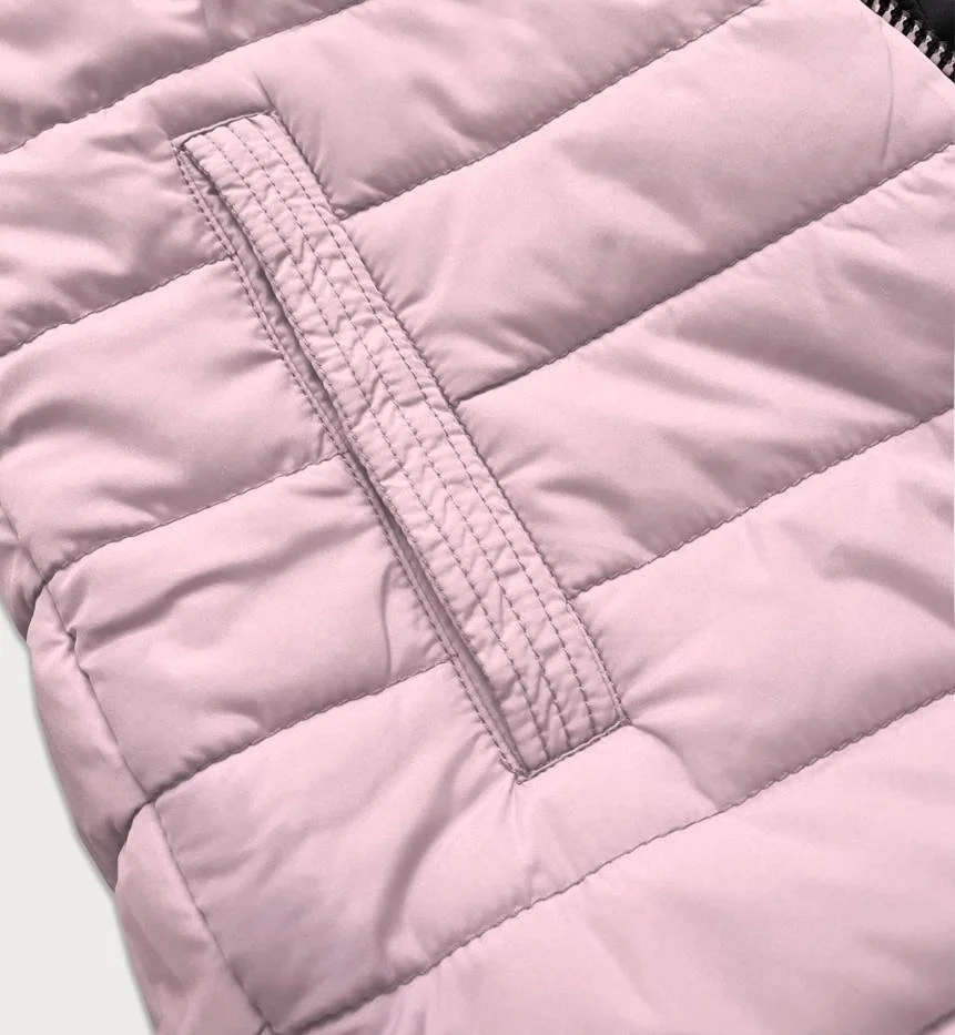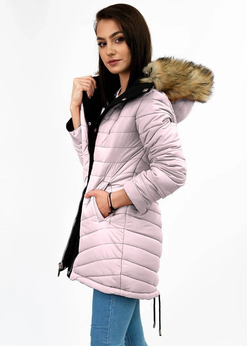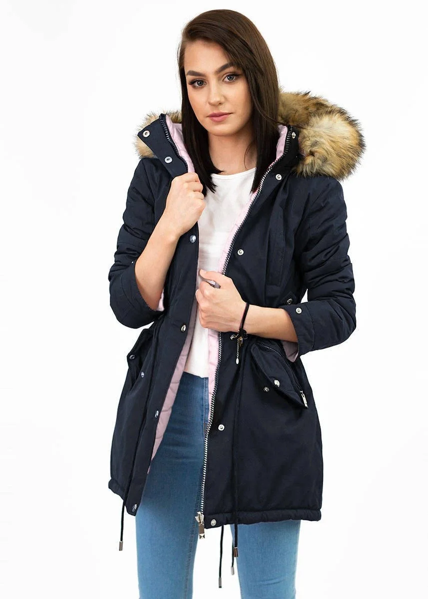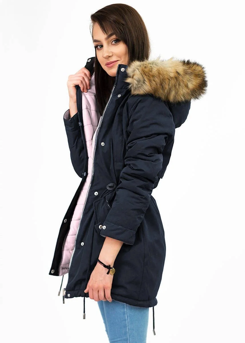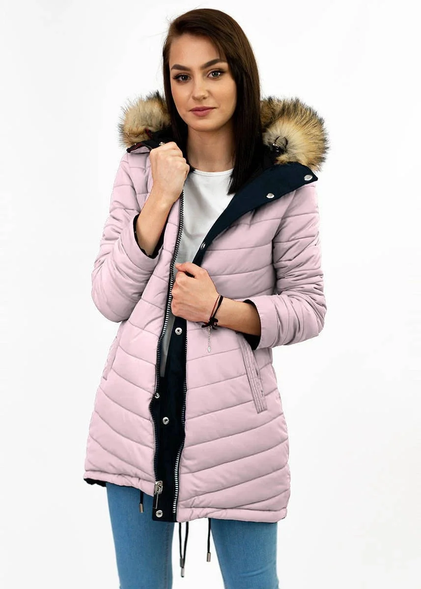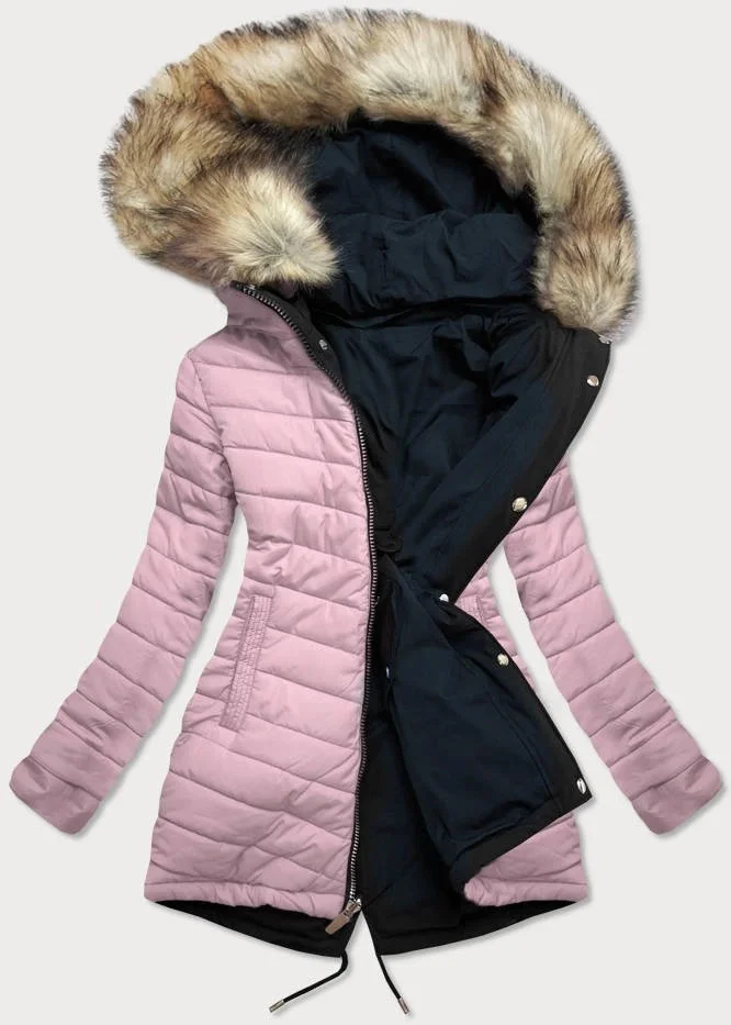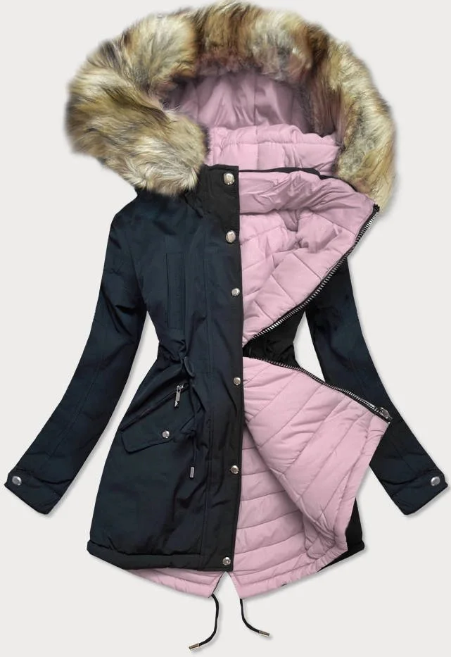 Tmavě modro-růžová oboustranná dámská zimní bunda s kapucí (w211)