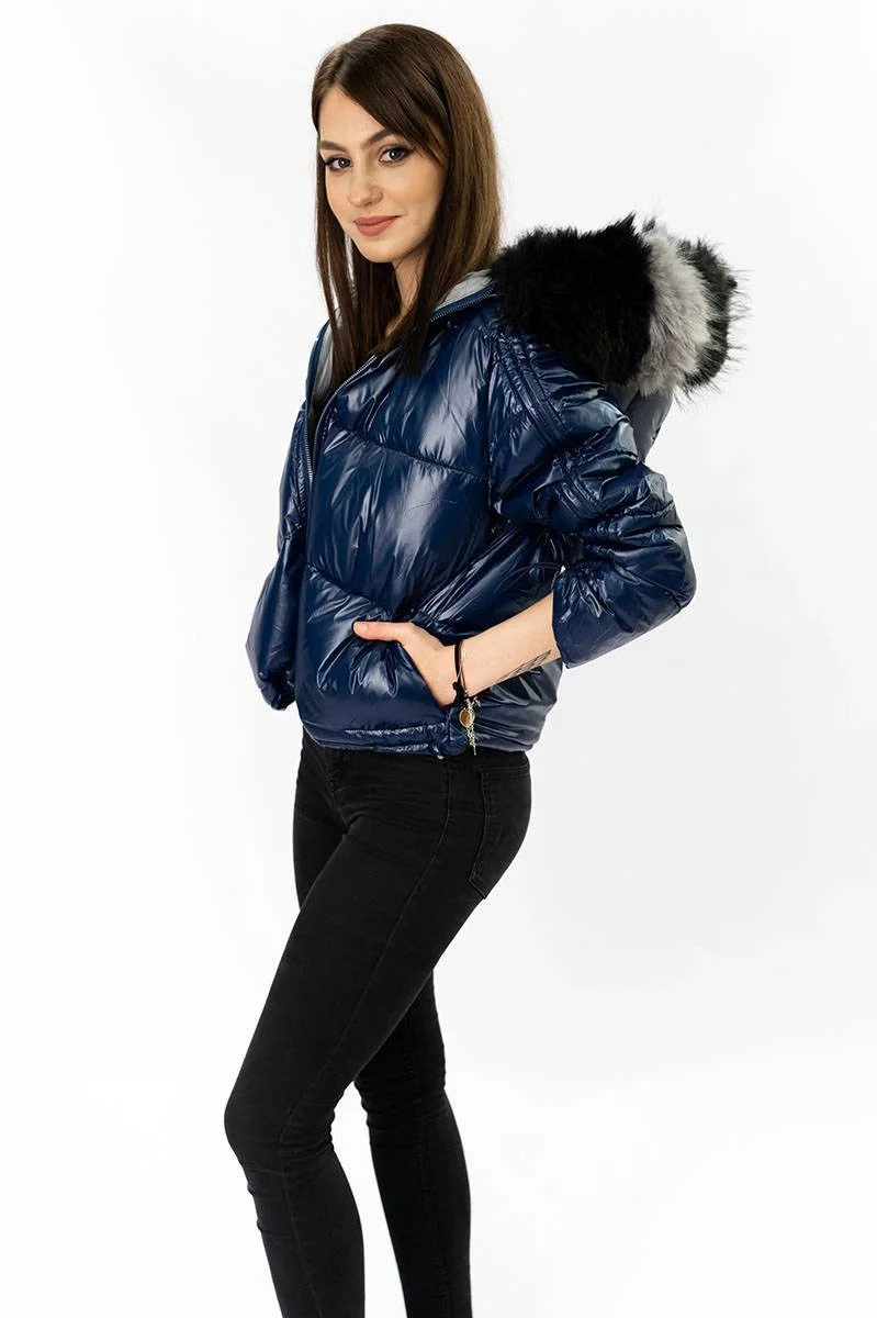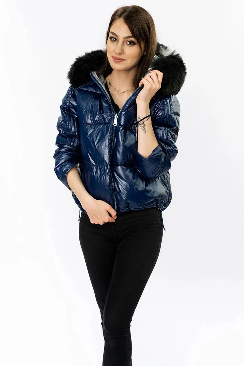 Přidání recenze k Tmavě modro-šedá oboustranná dámská bunda (b9555)