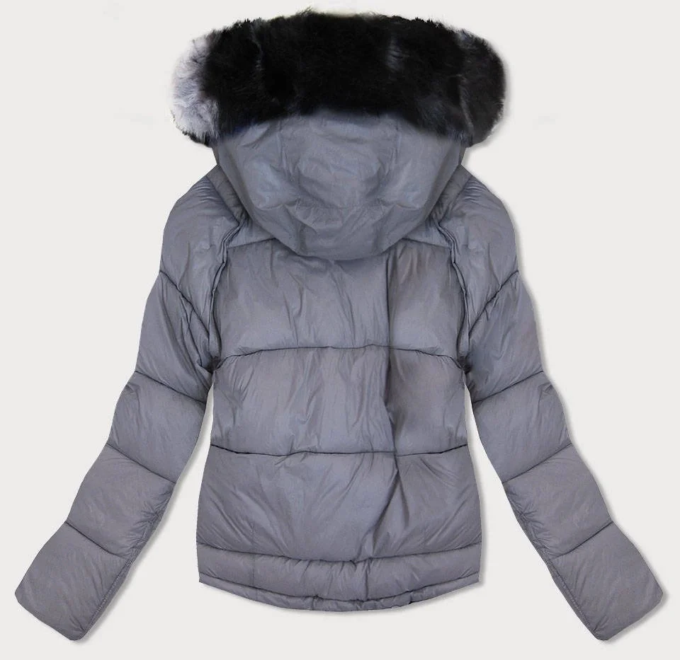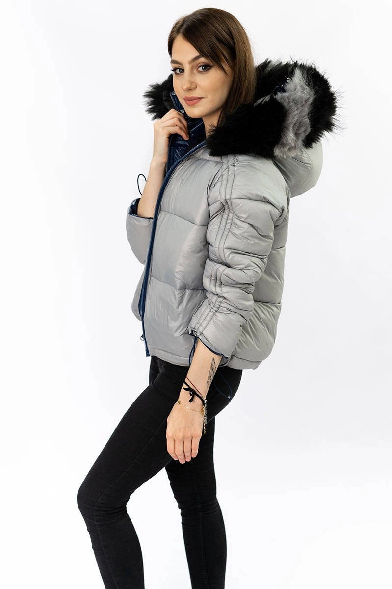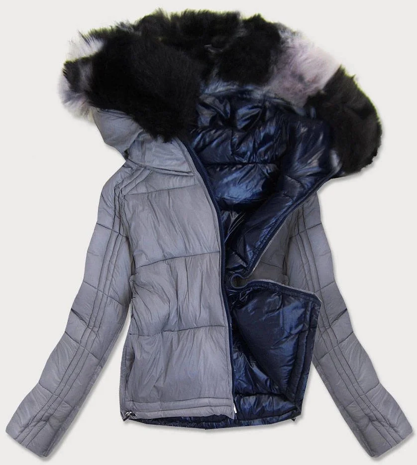 Tmavě modro-šedá oboustranná dámská bunda (b9555)