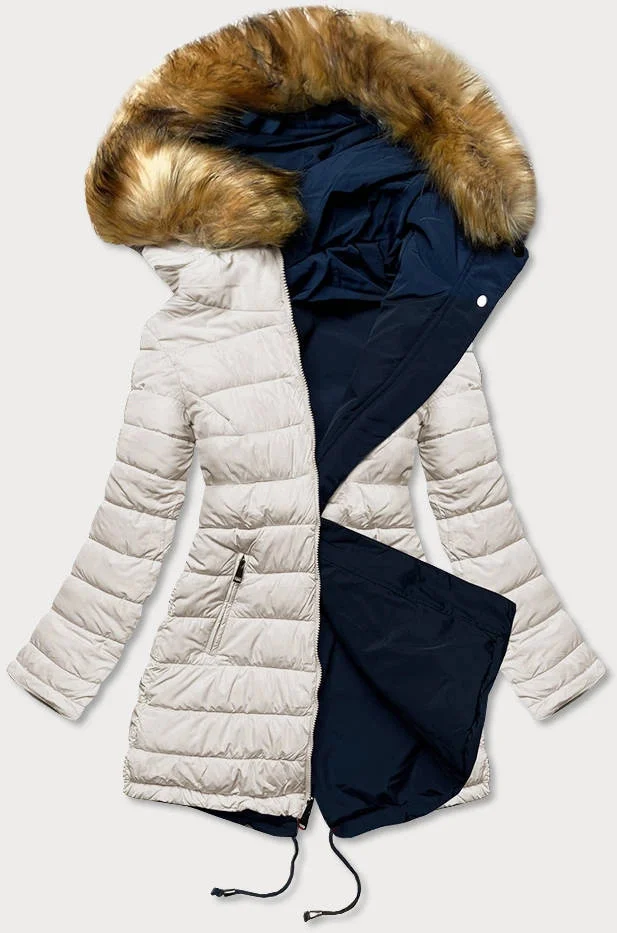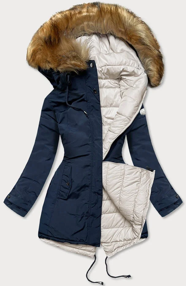 Přidání recenze k Tmavě modro-bílá oboustranná dámská zimní bunda (m-21508)
