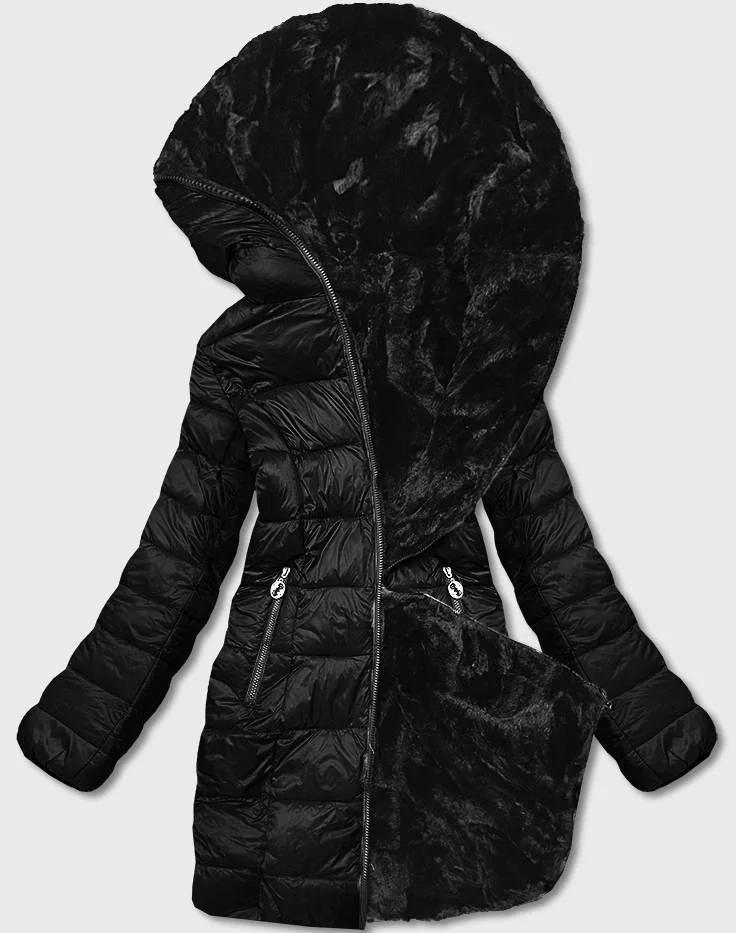 Černá oboustranná dámská bunda - kožíšek (b8052-1)