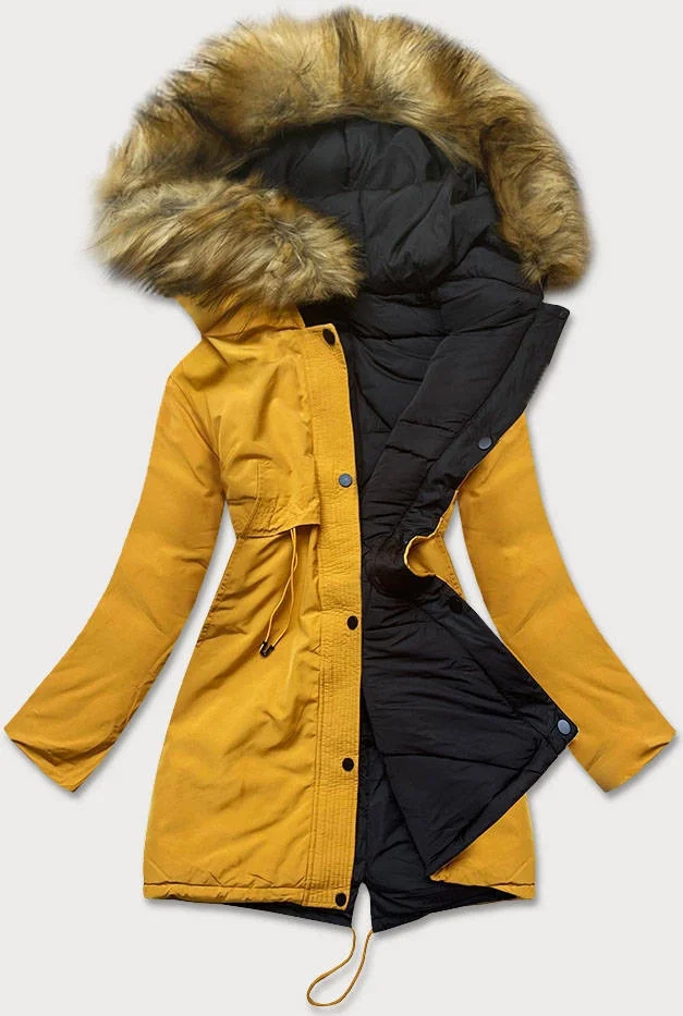 Žluto-černá oboustranná dámská zimní bunda (m-136)