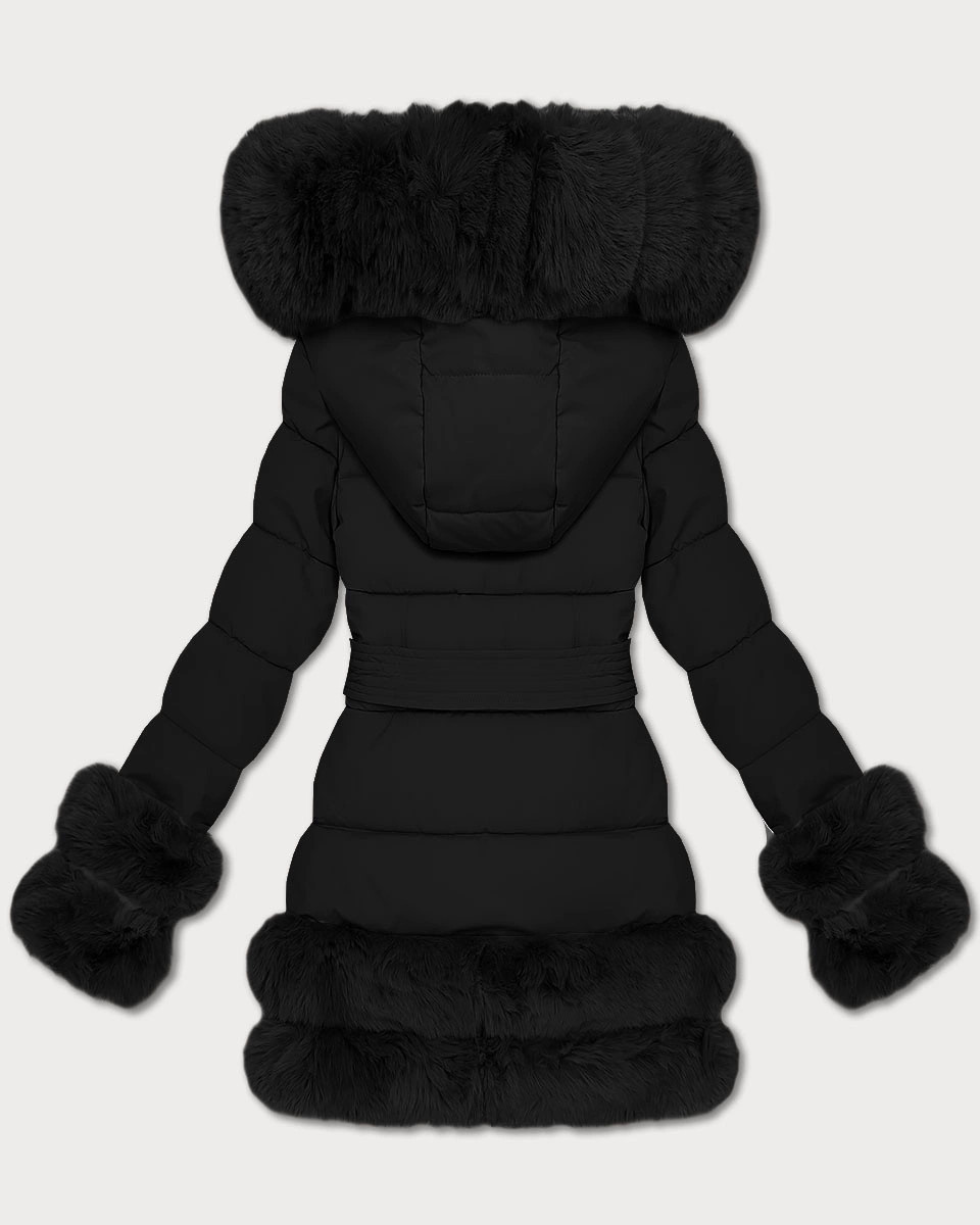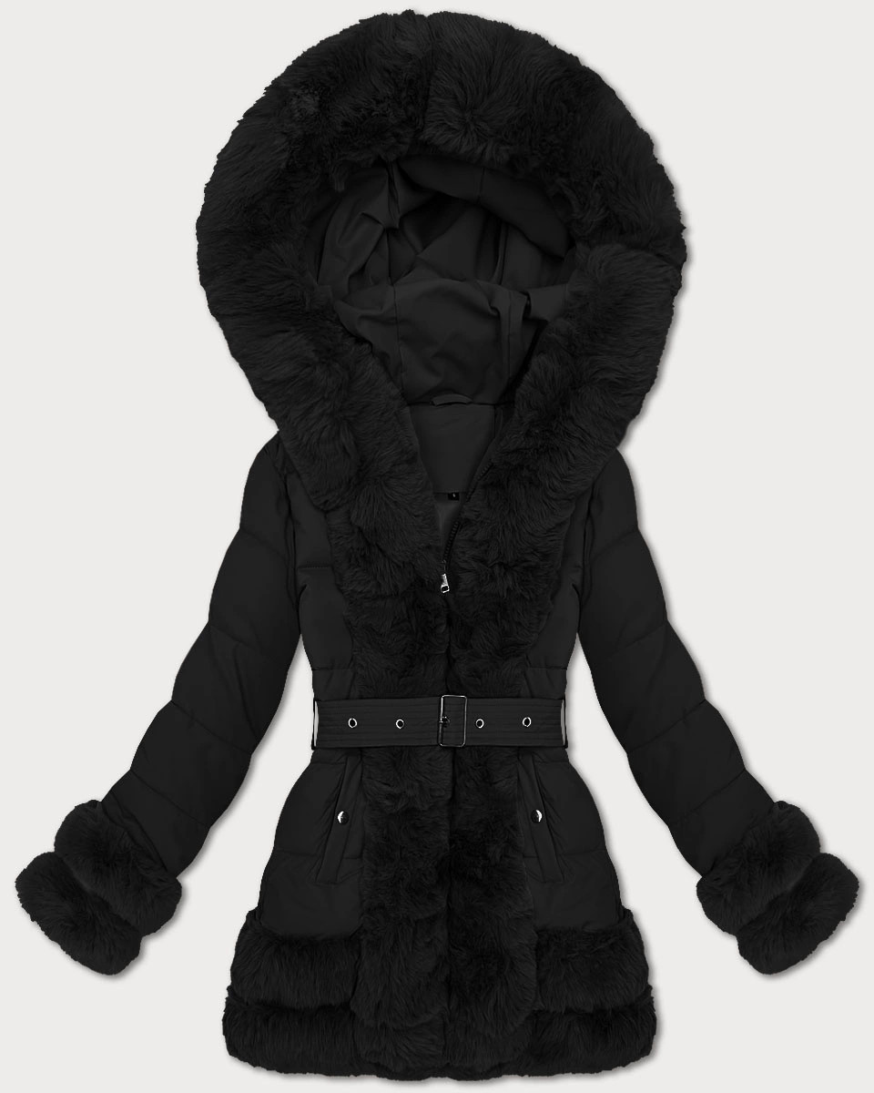 Elegantní černá bunda pro přechodné období s kožešinou S'West (B8526-1)