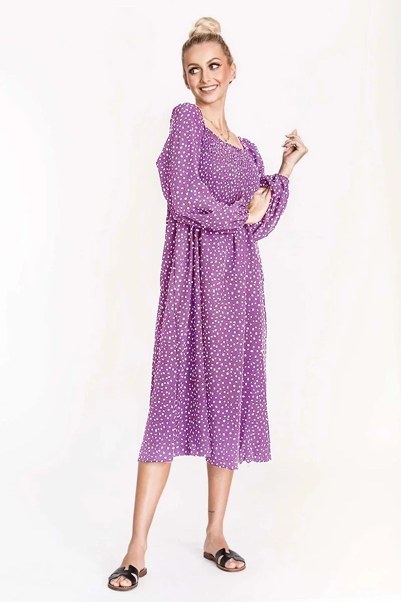 Fialové dámské šaty se spuštěnými rameny Ann Gissy (DLY018)