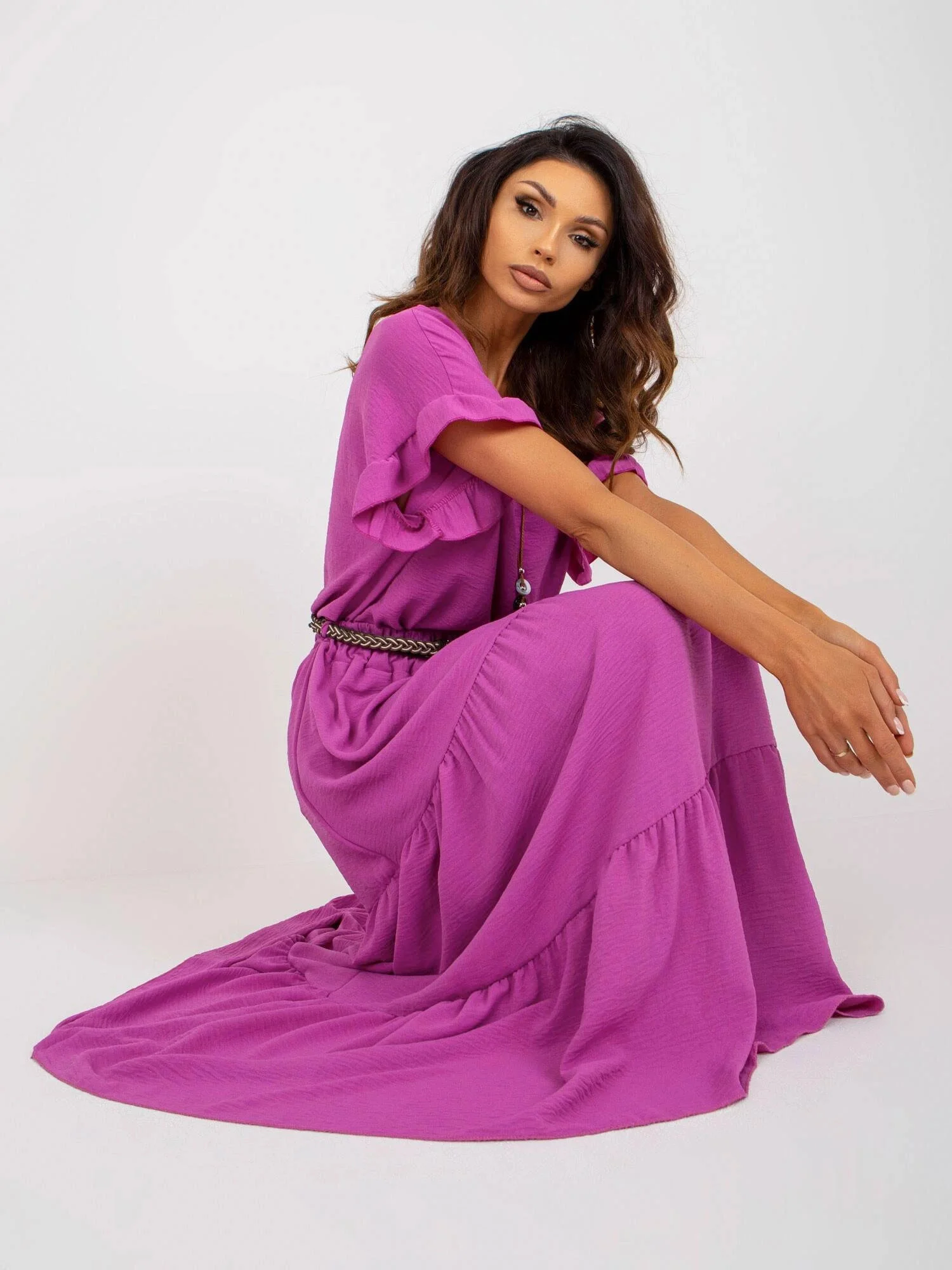 Přidání recenze k Fialové dlouhé dámské šaty s volánkem (8367)