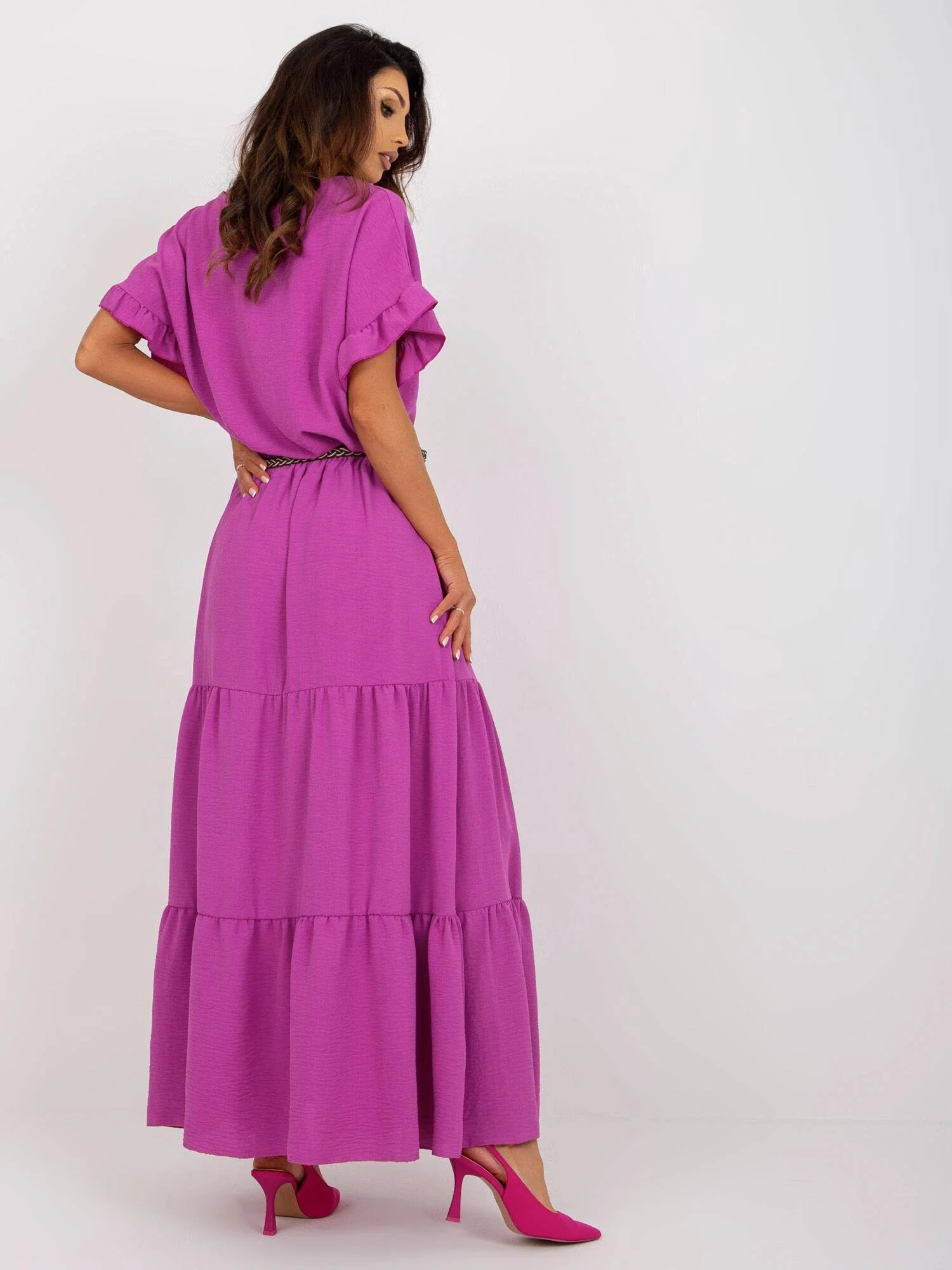 Fialové dlouhé dámské šaty s volánkem (8367)