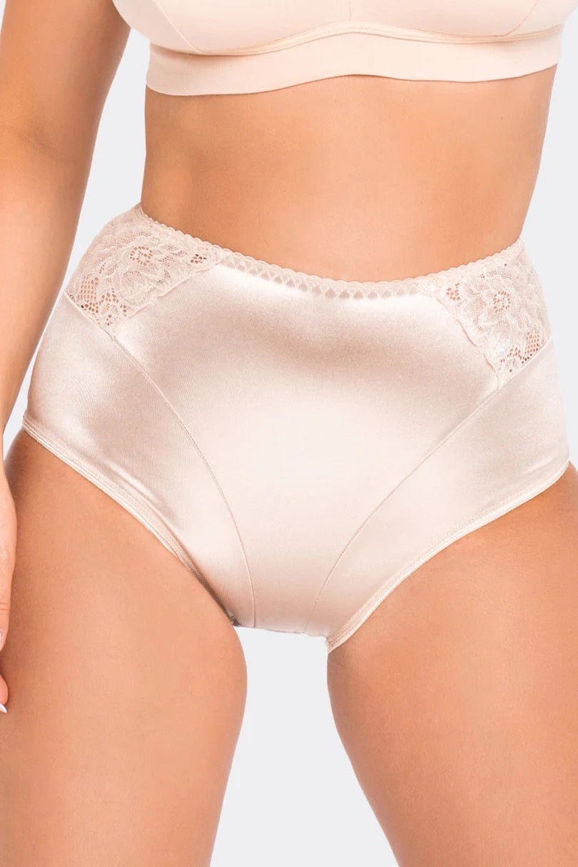Tvarující kalhotky plného a vypasovaného střihu s vyšším sedem. Vyrobeno z hladkého polyamidového úpletu. Na bocích