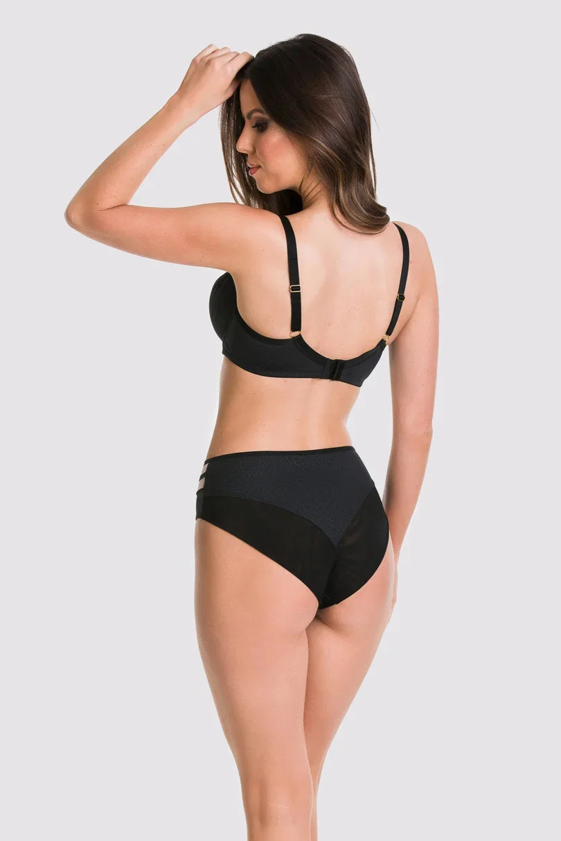 Celkové kalhotky z černého mikrovlákna, boky z tylu s našitými černými pruhy.