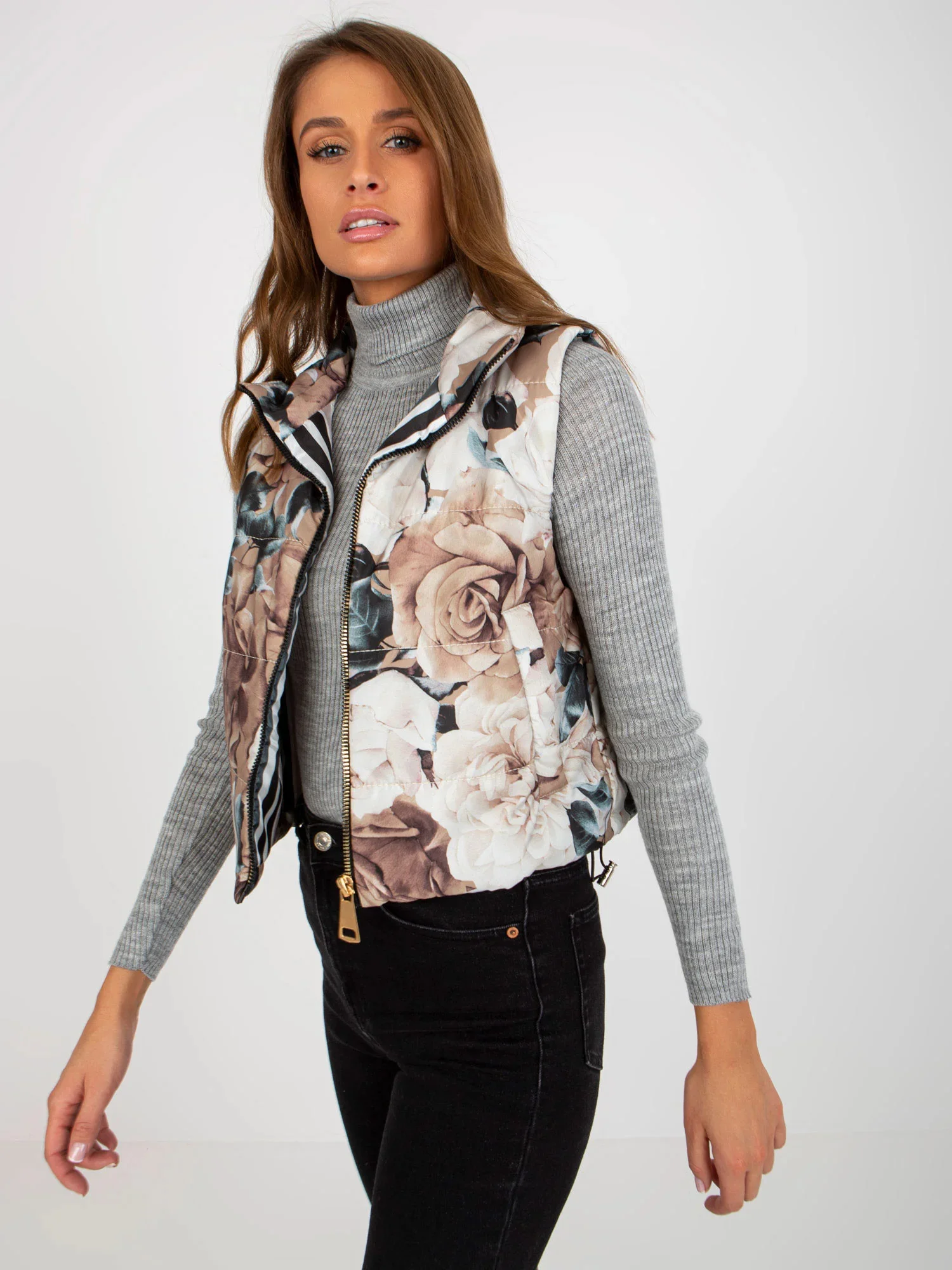 Béžová prošívaná květinová vesta pro ženy .