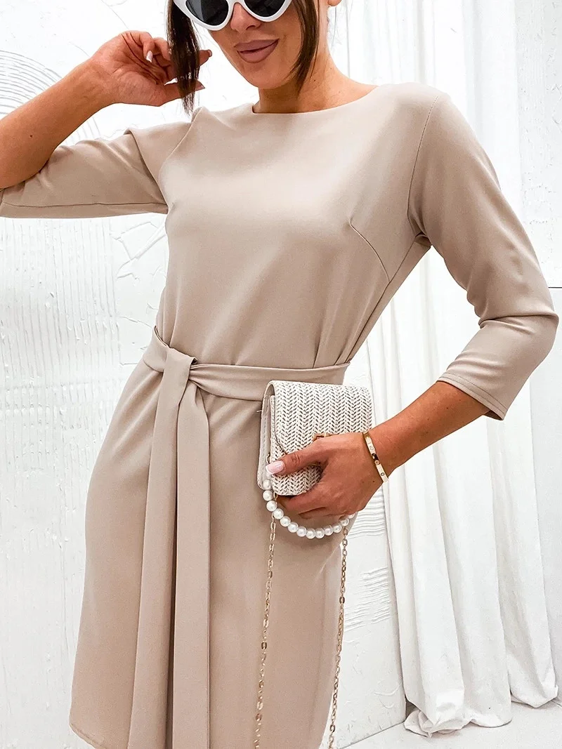 Přidání recenze k Klasické béžové šaty s páskem pro zavazování (701)