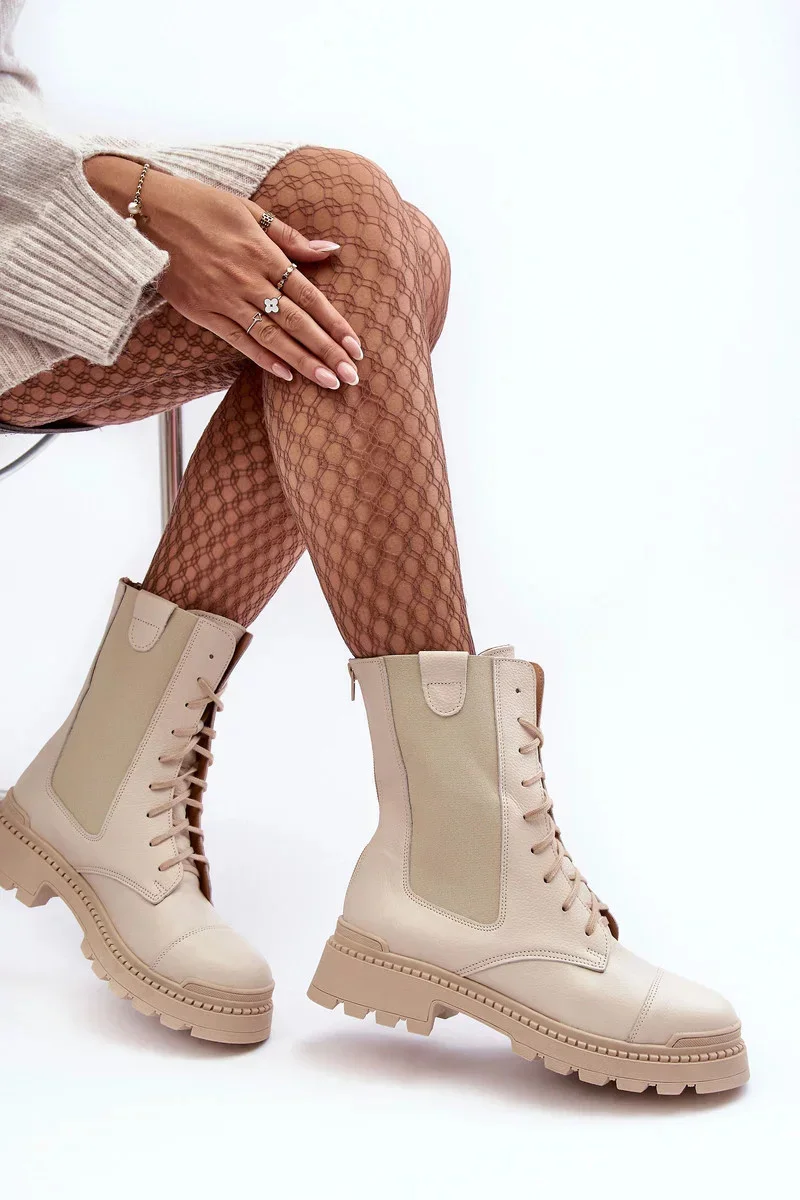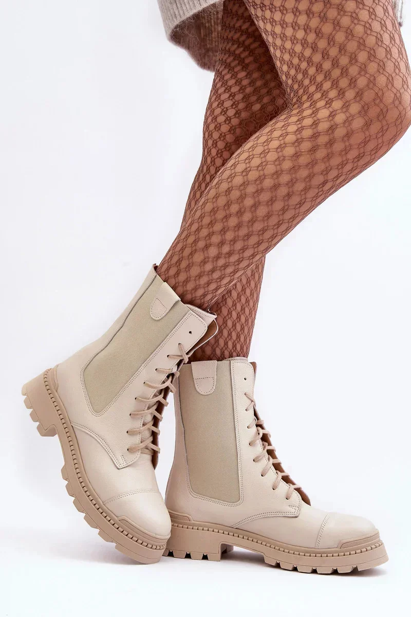 Kožené dámské pracovní boty šněrovací světle béžová Nicole