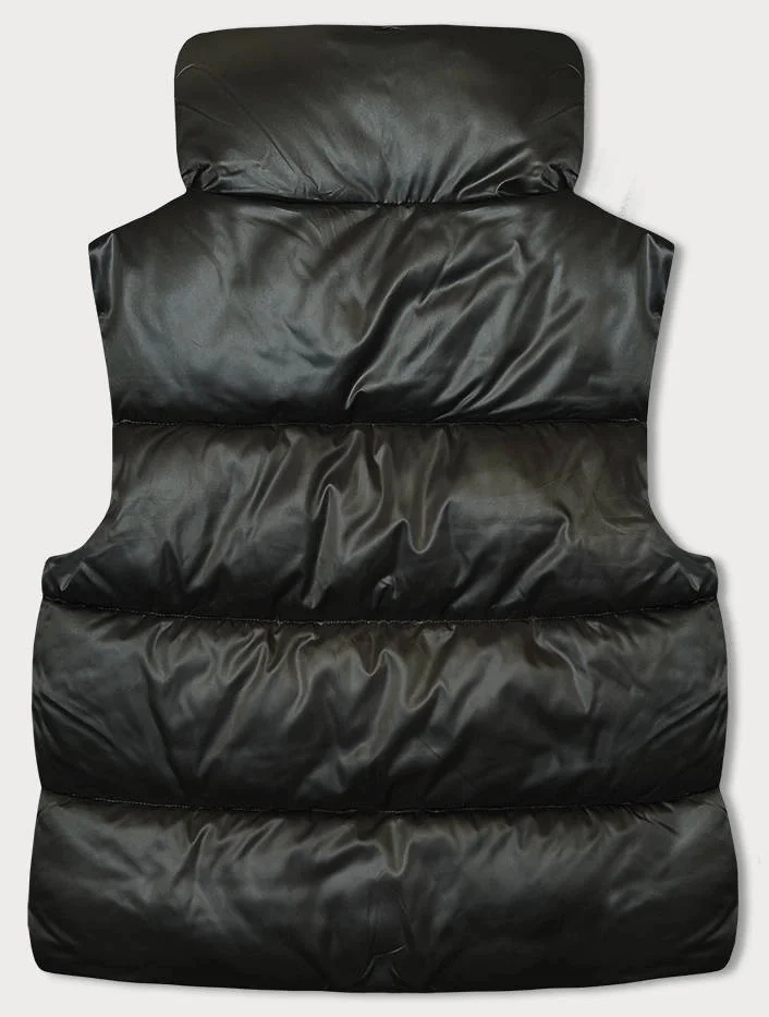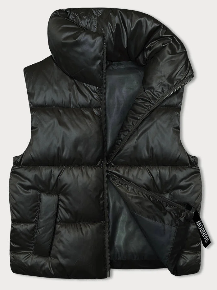 Krátká dámská vesta v khaki barvě se stojáčkem (B8158-11)