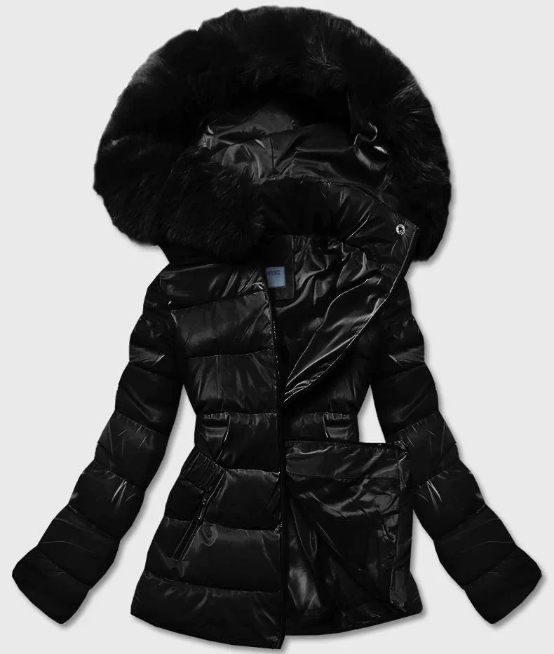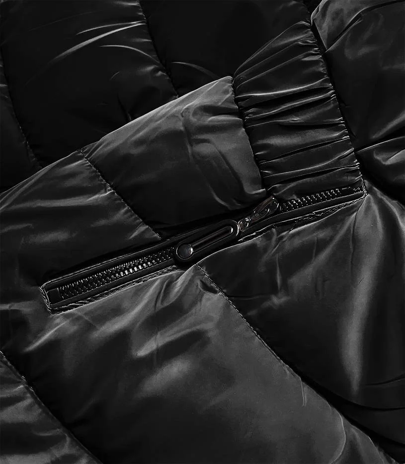 Černá krátká lesklá dámská bunda (B8090-1)