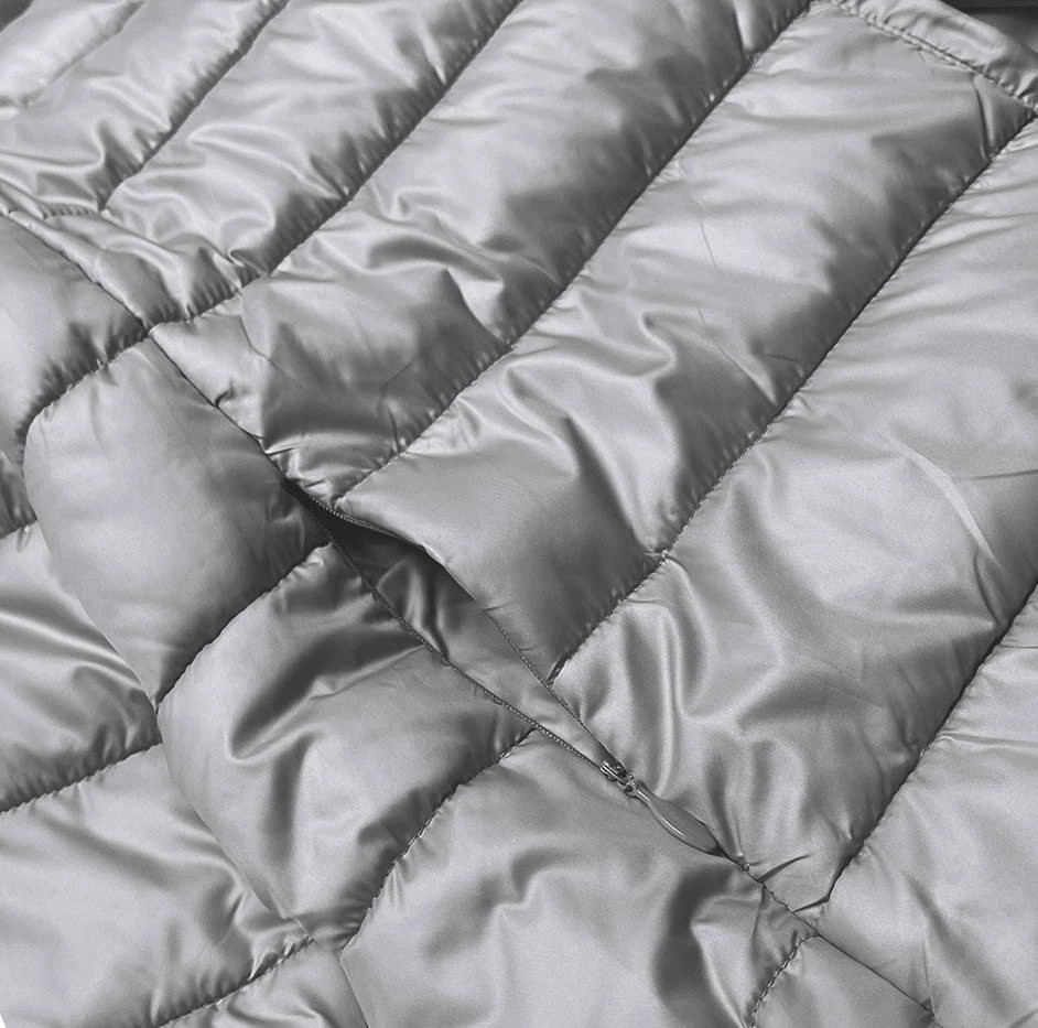 Přidání recenze k Krátká šedá dámská bunda s úpletovými stahovacími lemy (P22/P3-6636-61)