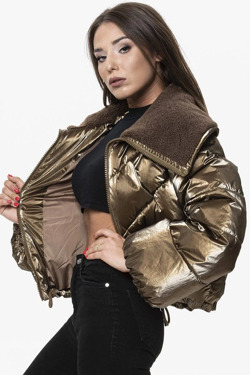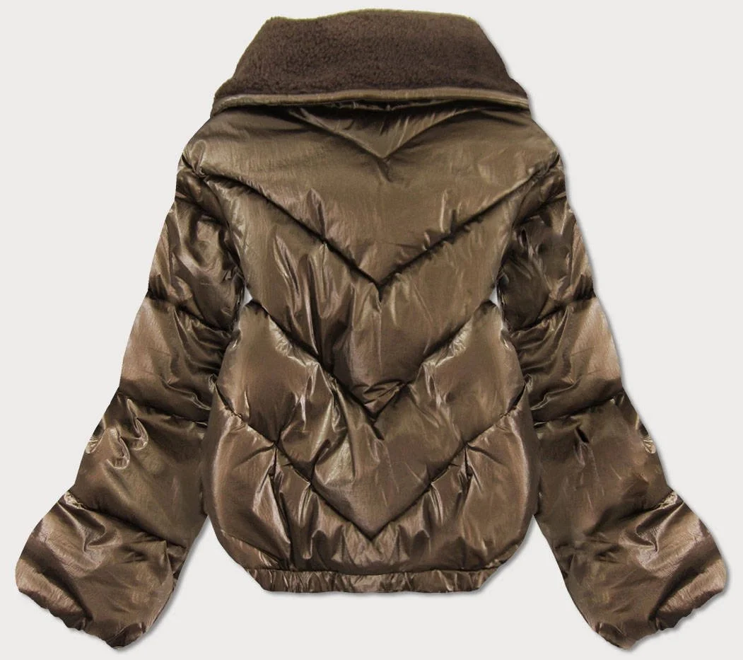 Hnědá krátká dámská oversize bunda se širokými rukávy (J9-016)