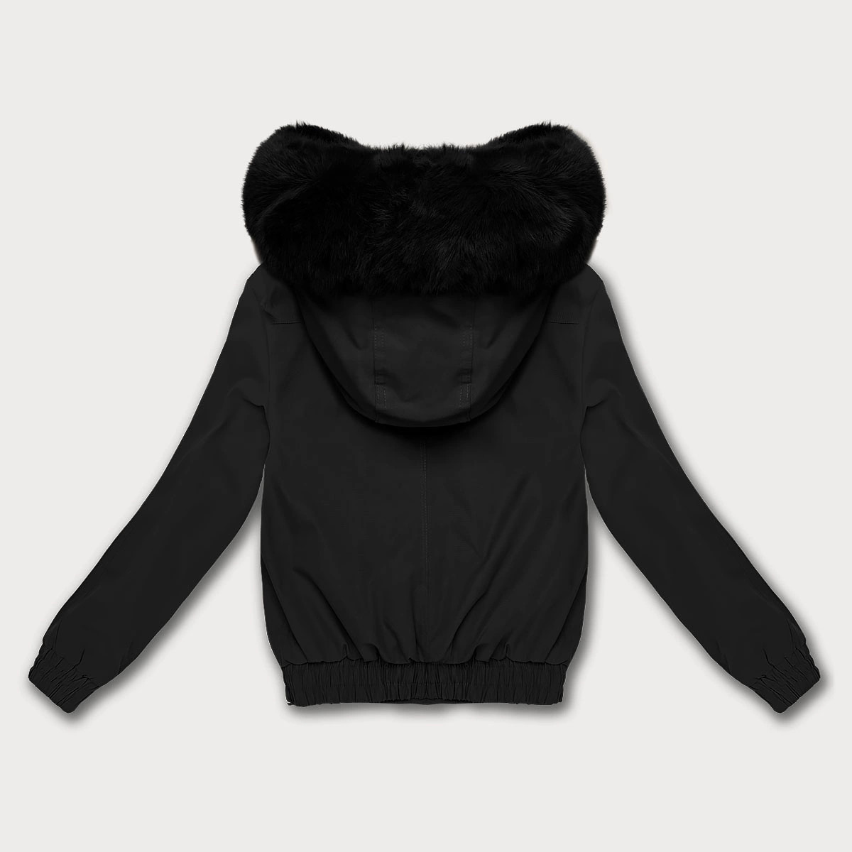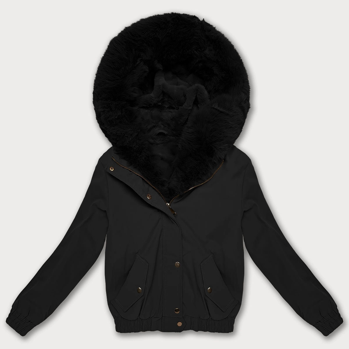 Krátká černá bunda s kožešinovou podšívkou S'West (B8506-1)