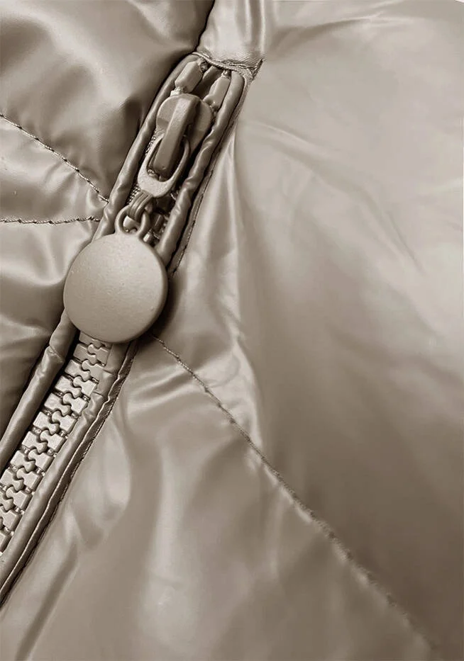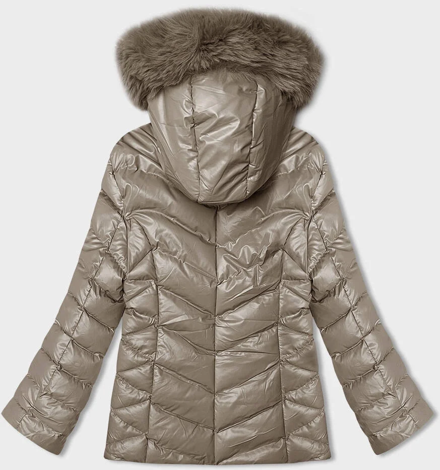 Béžová krátká zimní bunda s kapucí (5M3138-62)