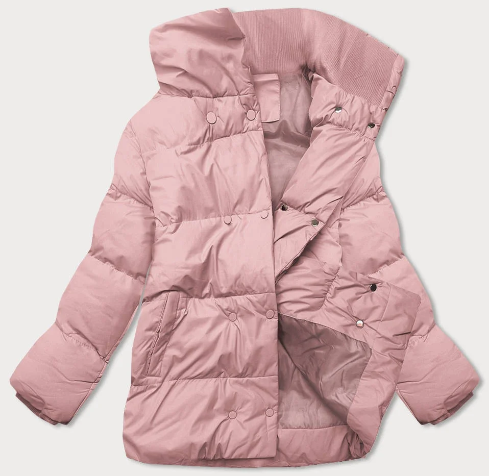 Růžová krátká zimní bunda s vysokým stojáčkem (5m729-46)
