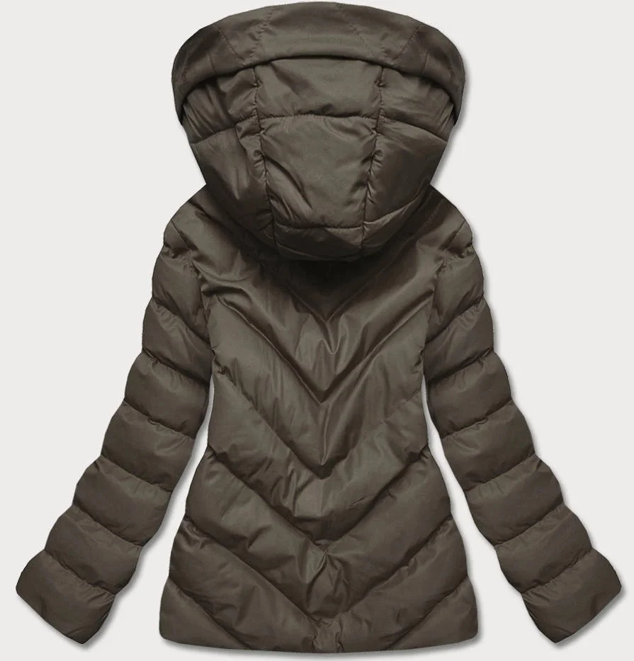 Krátká dámská zimní bunda v army barvě (5m725-136)