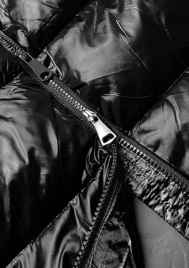 Bunda má jednoduchý střih, je prošívaná, je zateplená syntetickou péřovou výplní a má dvě kapsy. Model má kapuci, kterou není možné odepnout. Ve spodní části modelu jsou na bocích zipy. Bunda má délku ke kolenům.