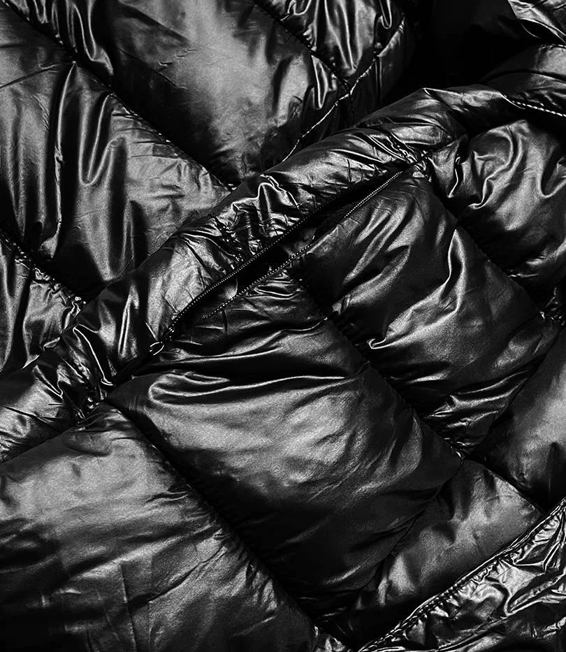 Bunda má jednoduchý střih, je zateplená vrstvou syntetické péřové výplně, má pásek pro zavazování, dvě kapsy a zapíná se dvousměrným zipem a panelem s patentkami. Na koncích rukávů jsou skryté stahovací lemy. Model má délku do poloviny stehen.