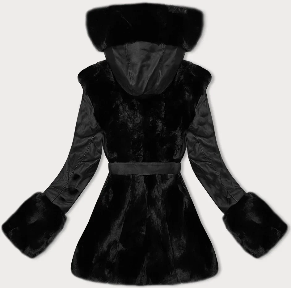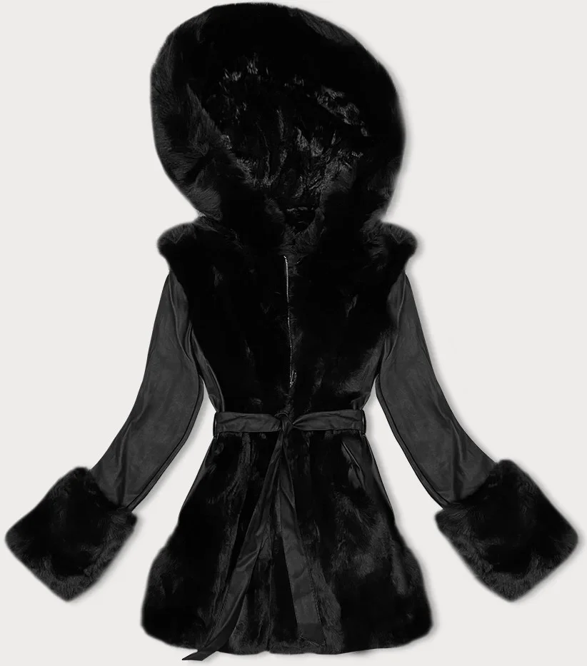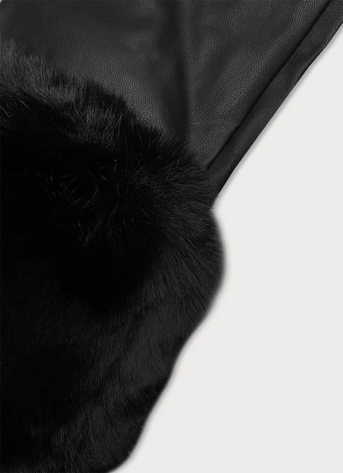 Černá bunda z eko kůže s kožešinovou podšívkou J Style (11Z8079)