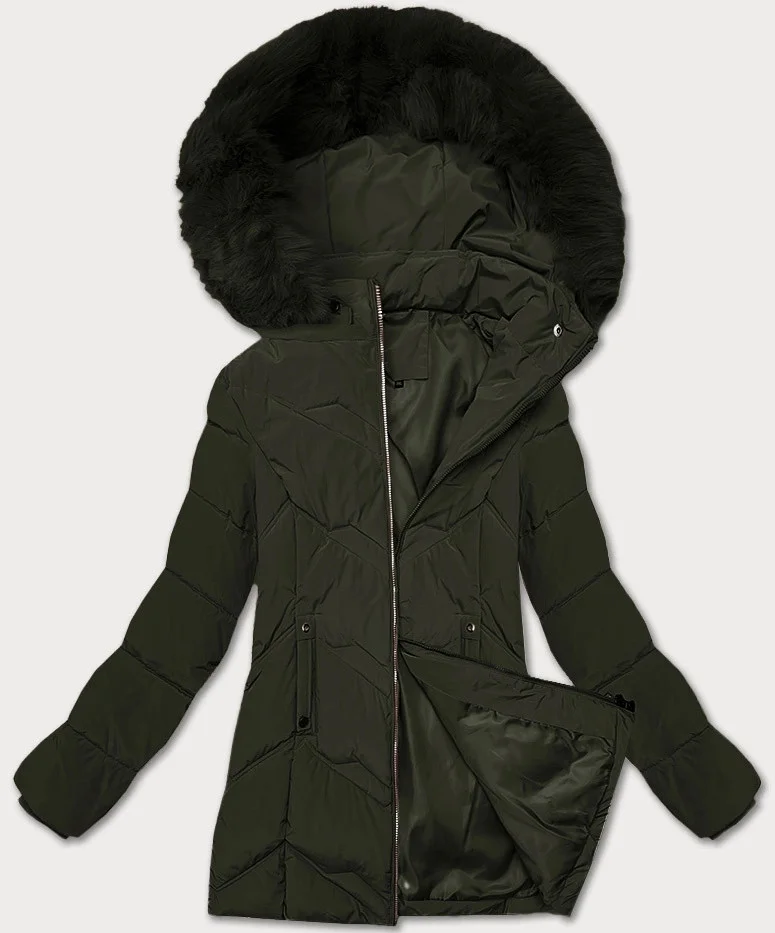 Dámská zimní plus size bunda v khaki barvě s kapucí S'west (B8300-11)