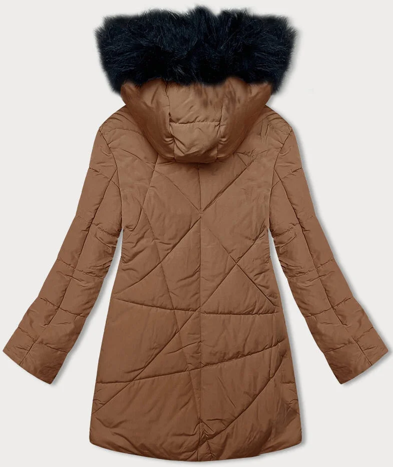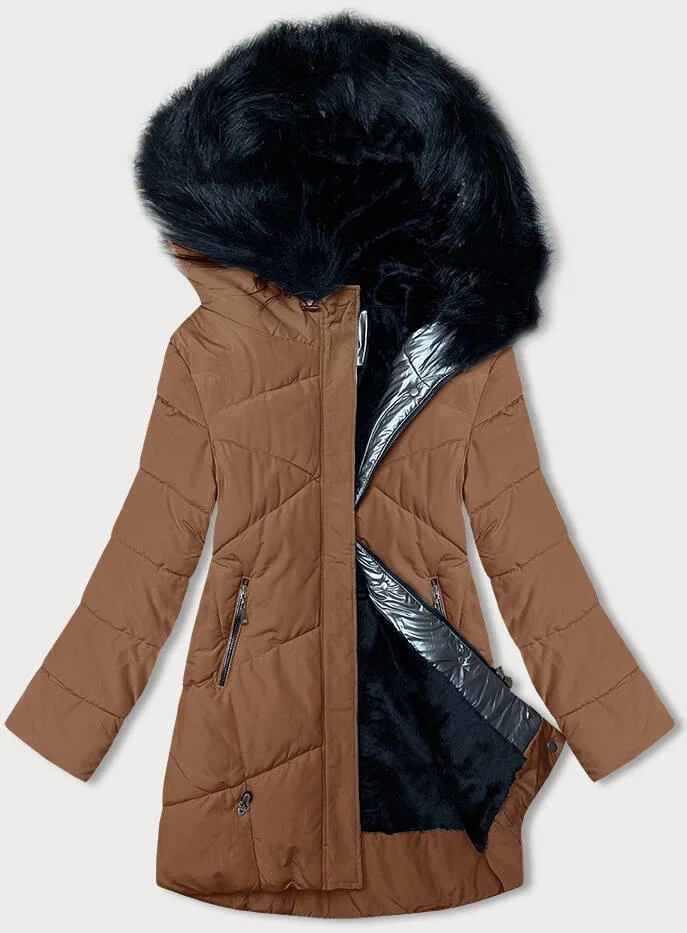 • Dámská zimní bunda v karamelové barvě s kožešinovou podšívkou (V715)