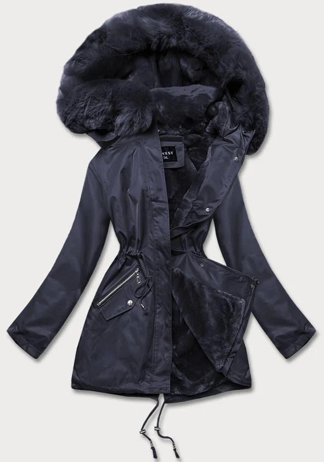 Tmavě modrá dámská zimní bunda s kožešinovou podšívkou (b550-3)
