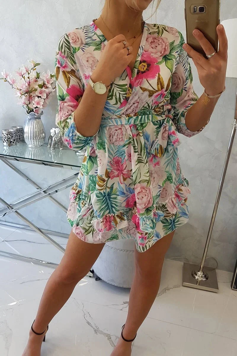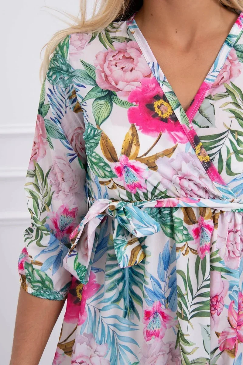 Zašlete nám Váš dotaz - Květinové šaty s vázáním v pase ecru