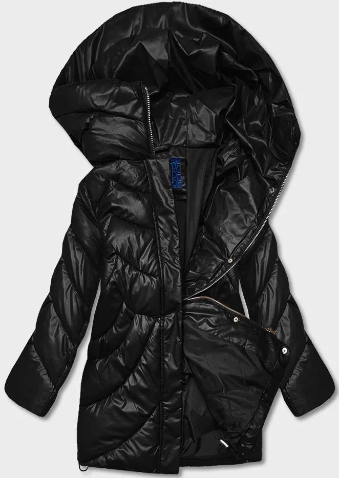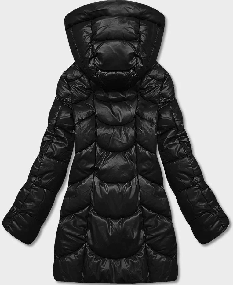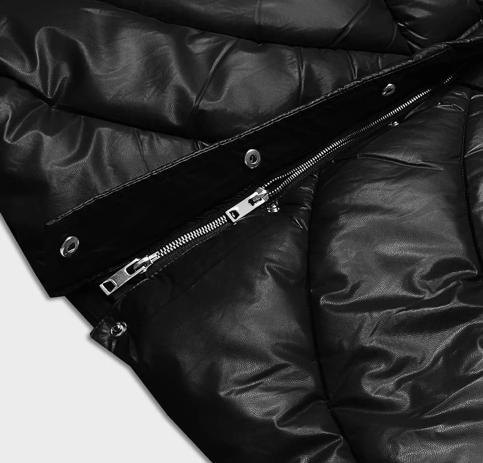 Černá volná dámská zimní bunda z ekologické kůže (AG2-J90)