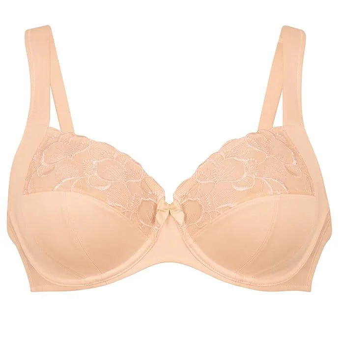 Pohodlná, měkká podprsenka s kosticí od Anity, která dokonale podporuje i velká prsa. Je vyrobená z příjemného mikrovlákna, zdobeného květinovou výšivkou na tylu. Široká, měkce podšitá ramínka zmírňují tlak na ramena a oblast krku a zajišťují nejvyšší komfort nošení. Podprsenka s vysokou funkčností při zachování estetických hodnot.