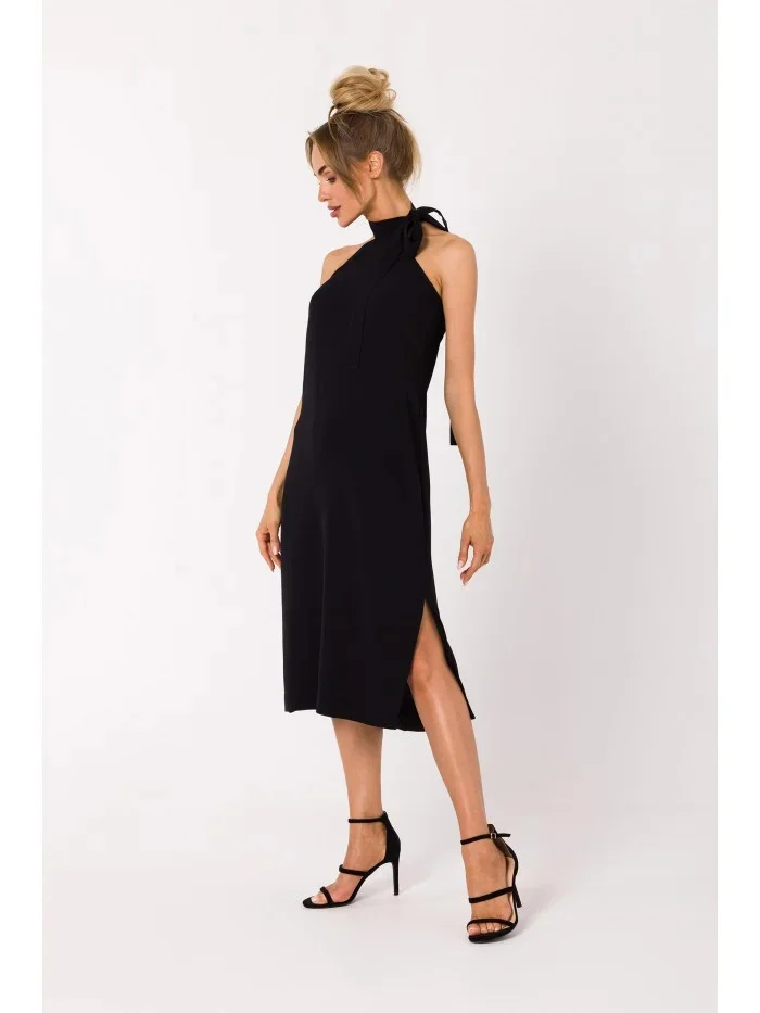 • M736 Šaty se zavazováním za krkem - černé