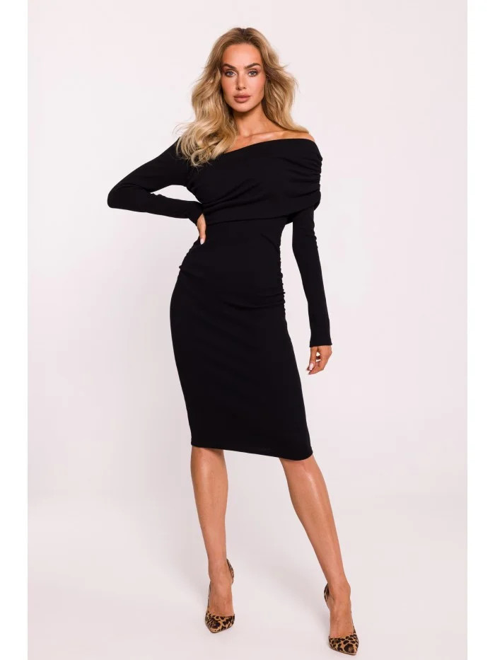 Zašlete nám Váš dotaz - M820 Asymetrické šaty s výstřihem z žebrového úpletu - černé