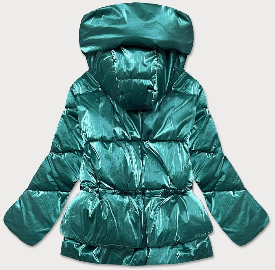 Zelená metalická krátká dámská zimní bunda puffer (omdl-022)