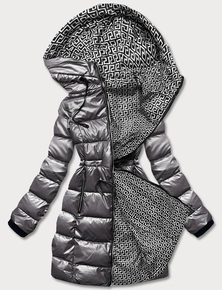 Šedá oboustranná dámská metalická bunda (R8070)