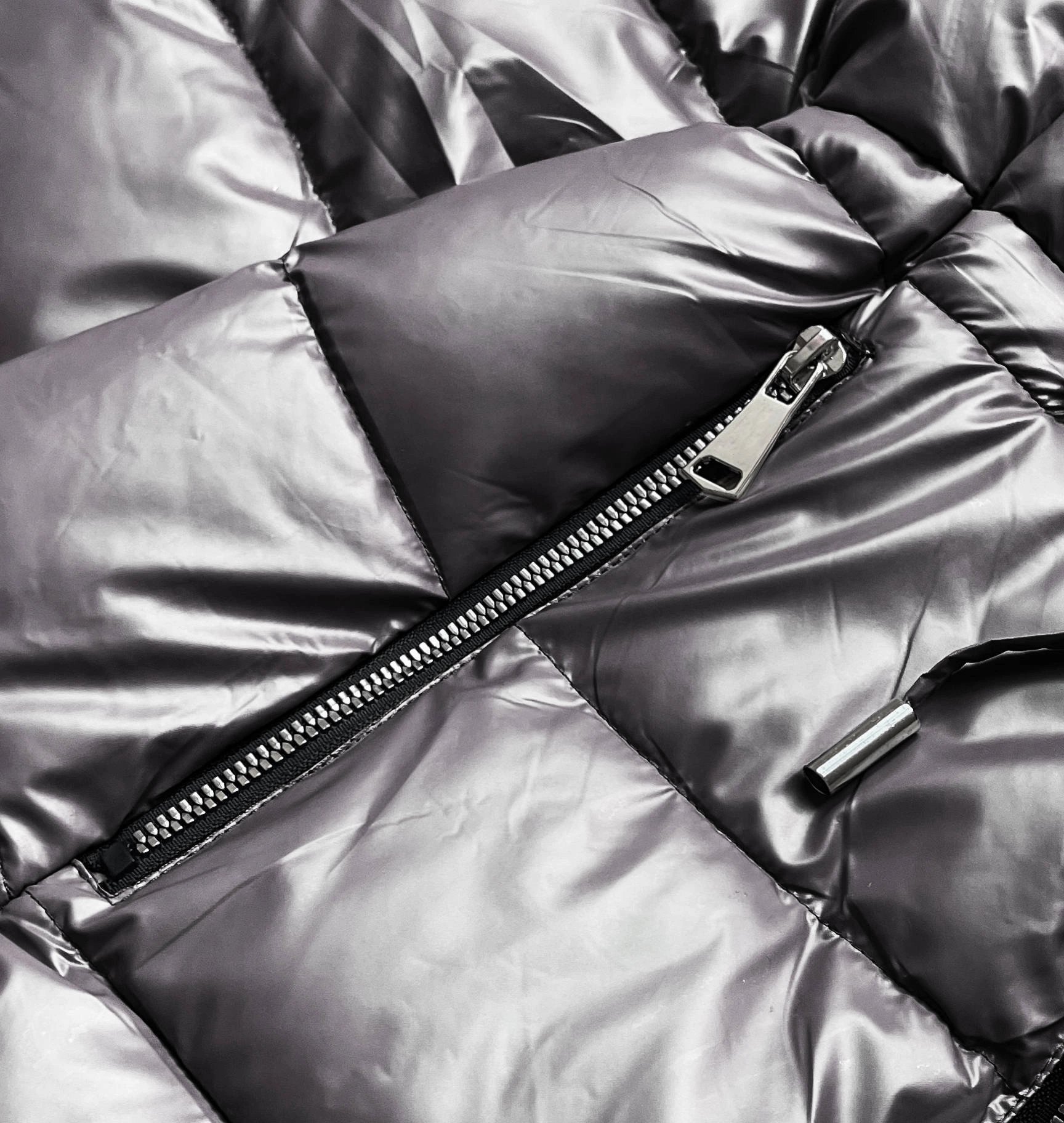 Přidání recenze k Šedá oboustranná dámská metalická bunda (R8070)