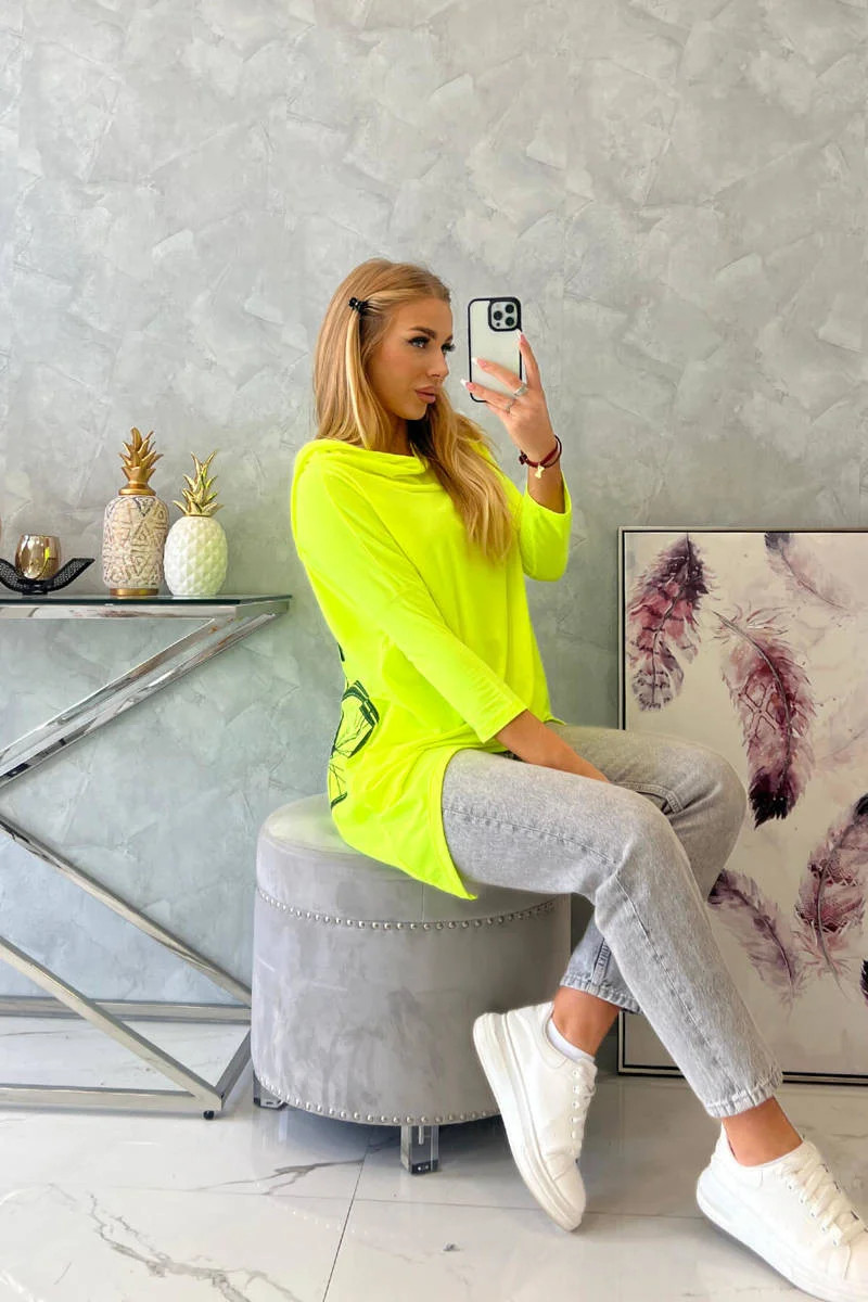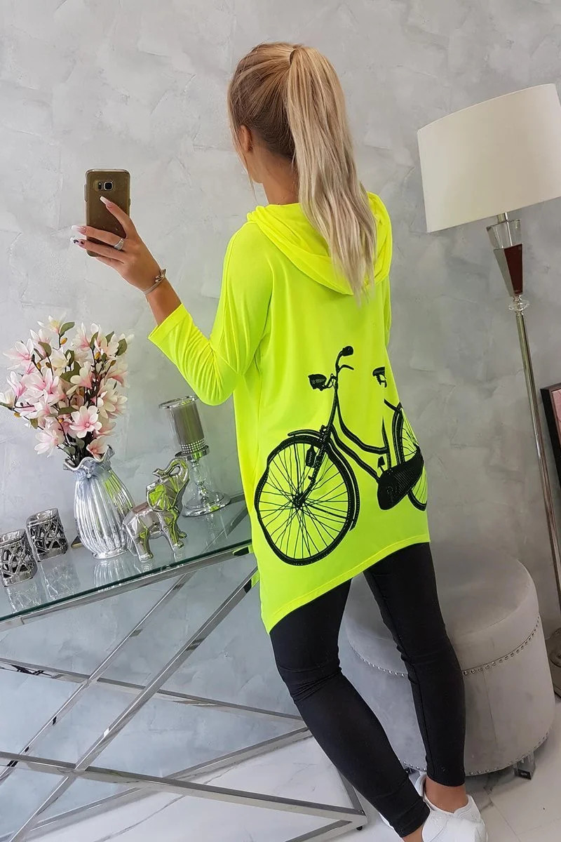 Mikina s potiskem kola žlutá neonová
