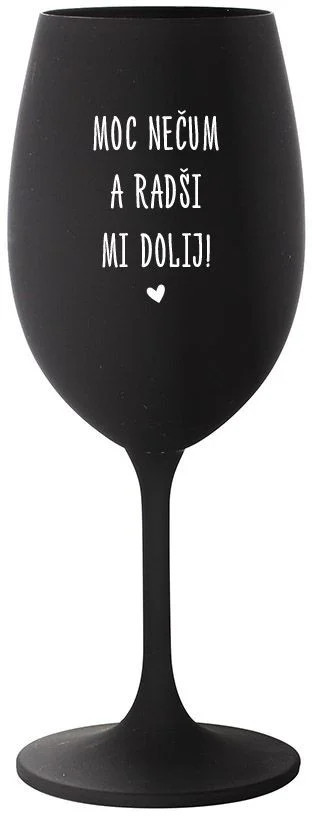 MOC NEČUM A RADŠI MI DOLIJ! - černá sklenice na víno 350 ml