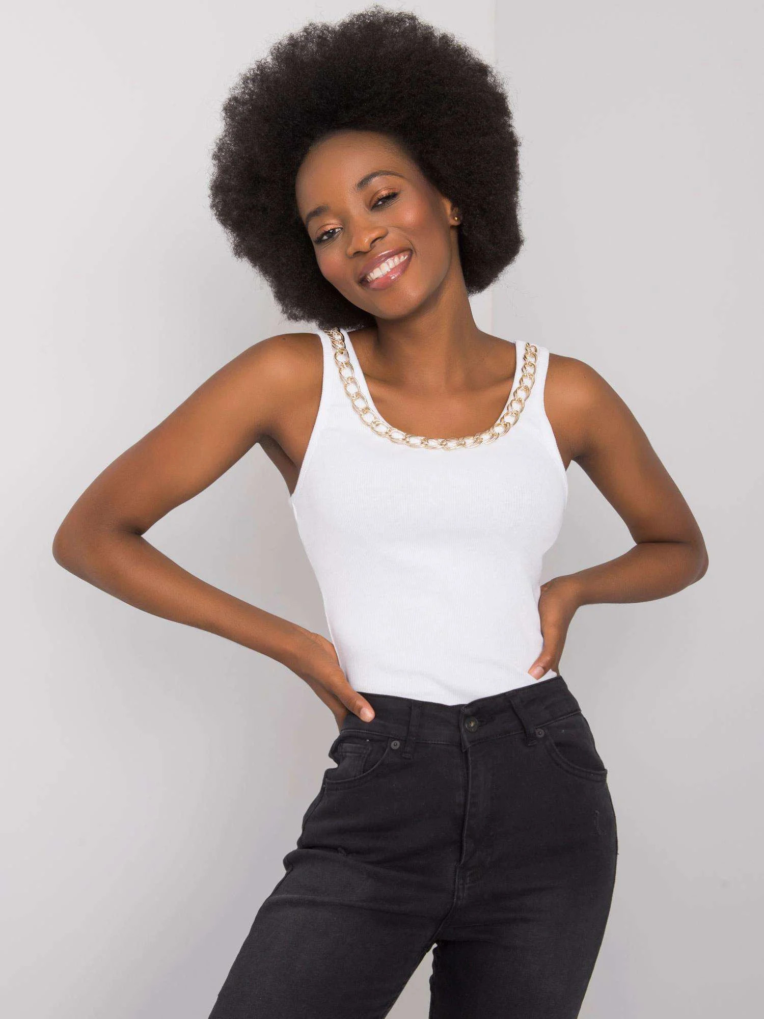 Rovně střižený top s výstřihem do V. Ramínka horní části s ozdobnými vazbami. Skvěle se hodí pro mnoho příležitostí.