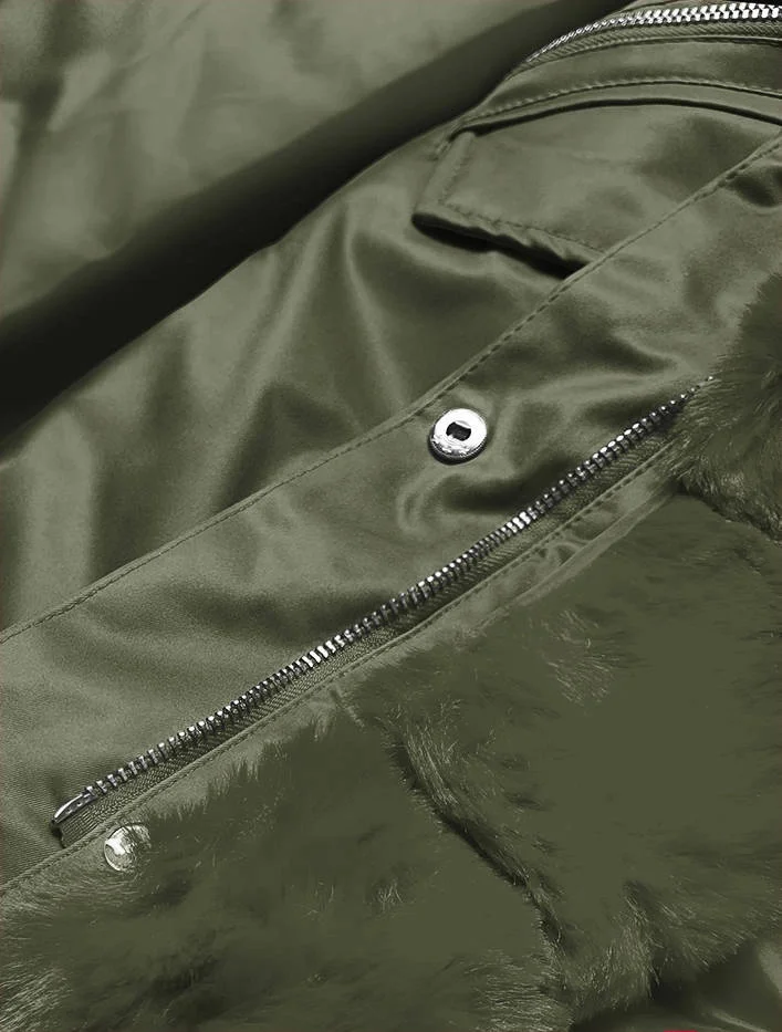 Dámská bunda parka v army barvě s kožešinou (5m762-136)