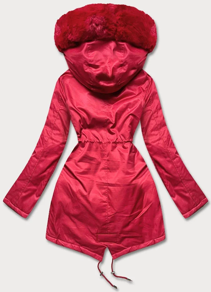 • Červená dámská bunda parka s kožešinou (5m762-270)