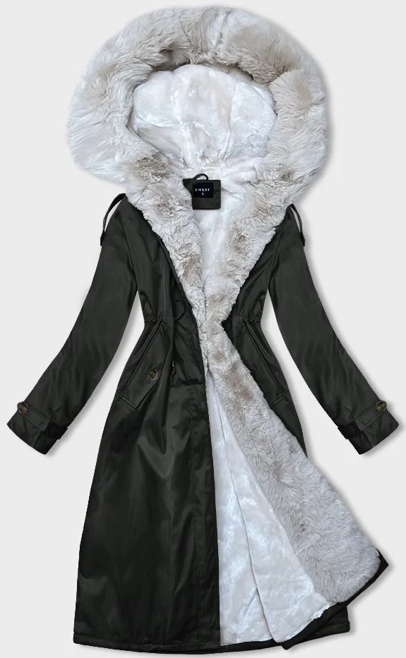 Dámská zimní bunda parka v army-béžové barvě s kožešinou (B557-11046)