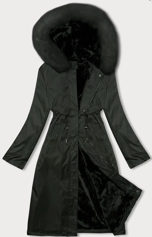 Dámská zimní bunda parka v army barvě s kožešinou S'West (R558-11)
