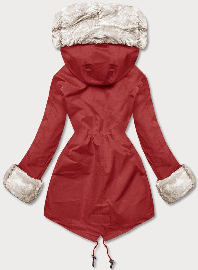 Tmavě červená bunda parka s kožešinovou odepínací podšívkou (5M763-6)