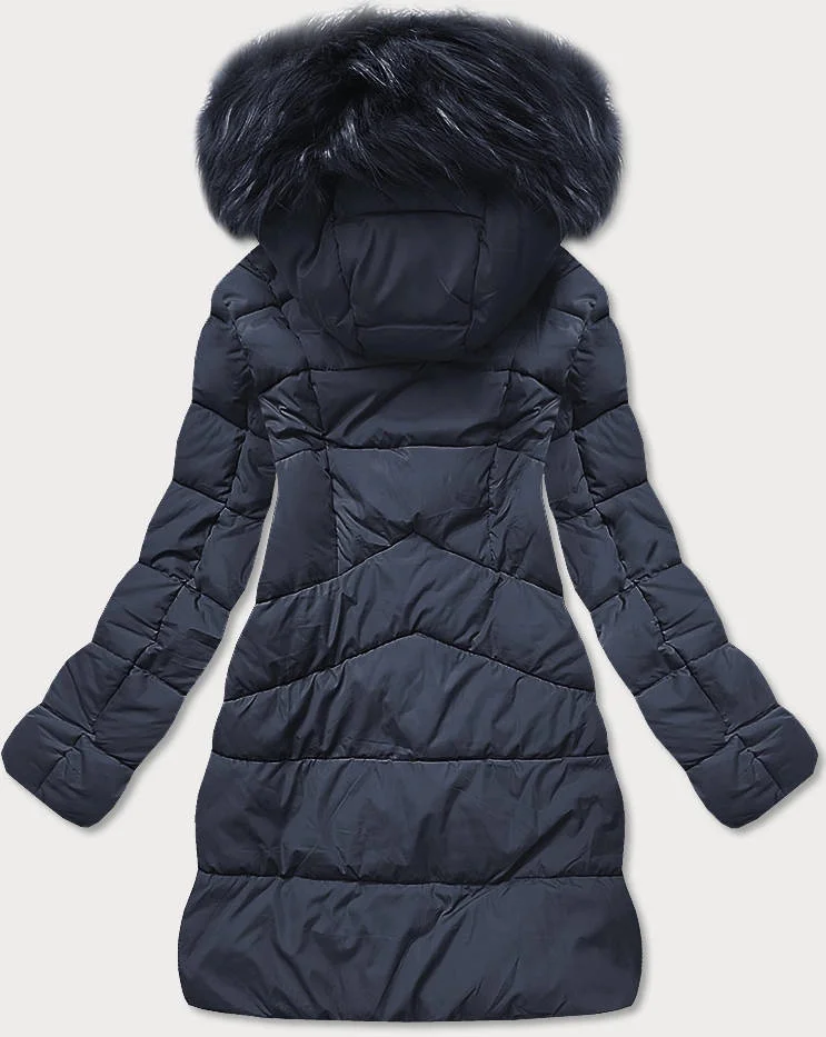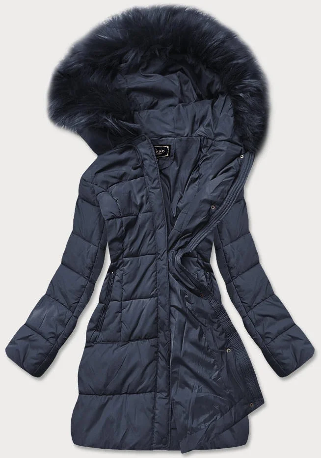 Tmavě modrá dámská prošívaná zimní bunda s kapucí (7757)