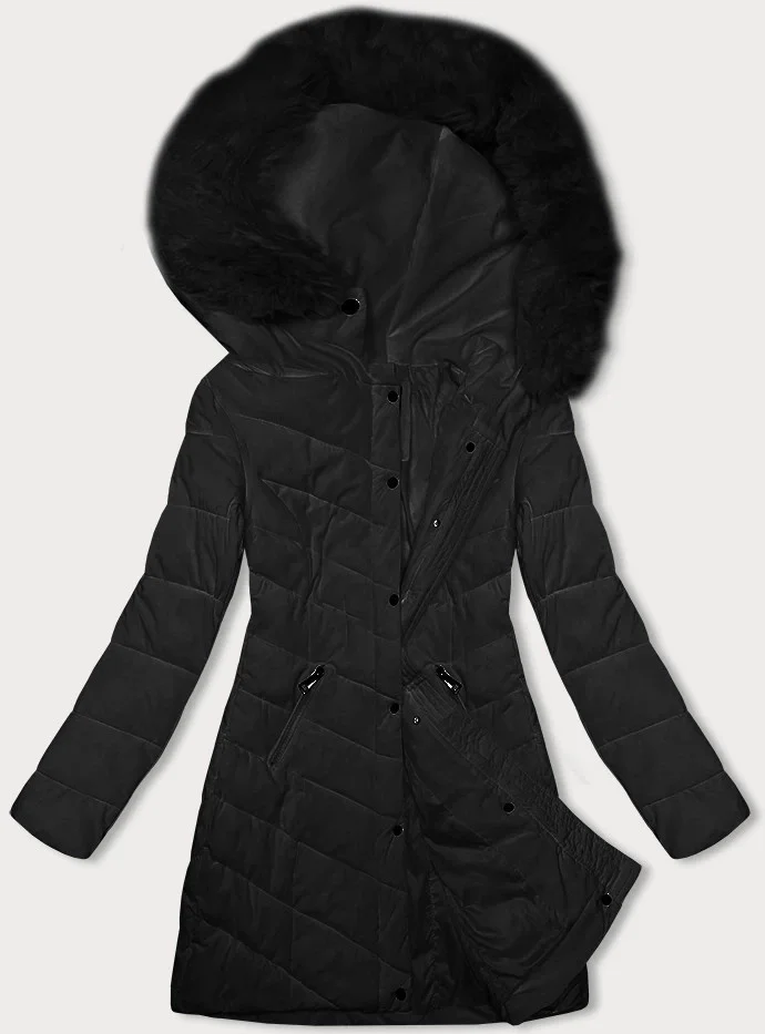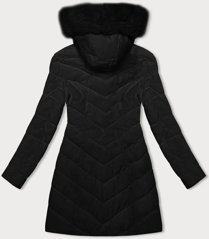 Černá prošívaná dámská zimní bunda s kapucí LHD (2M-057)
