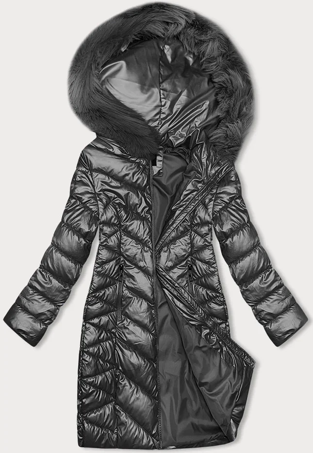 Prošívaná dámská zimní bunda v grafitové barvě J Style (16M9100-105)