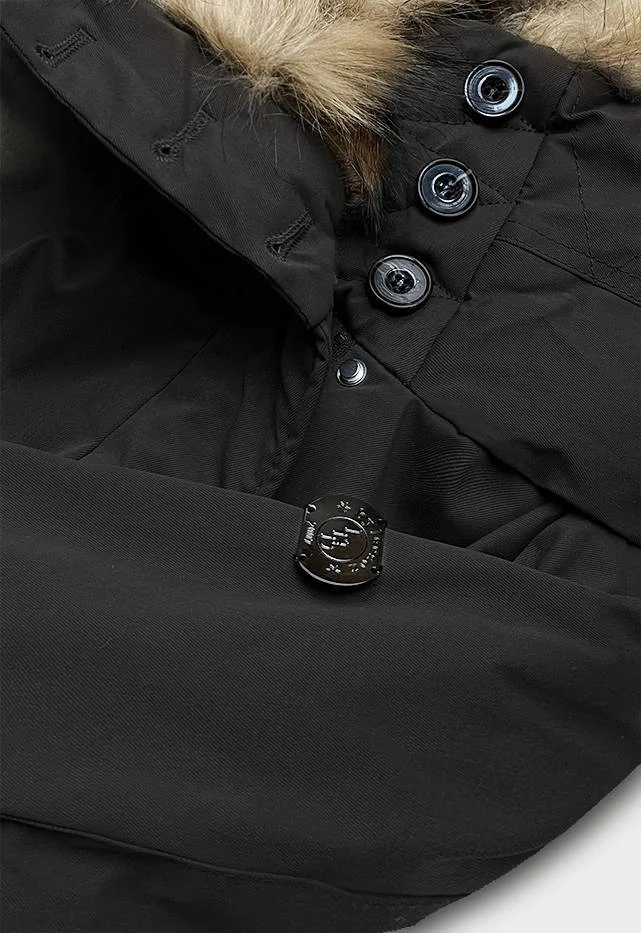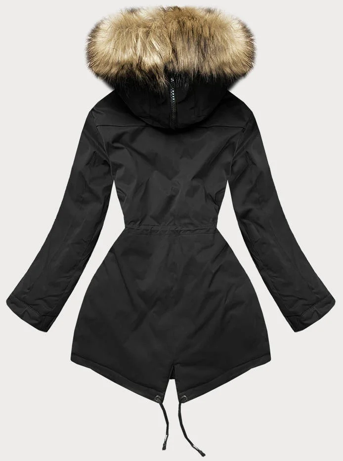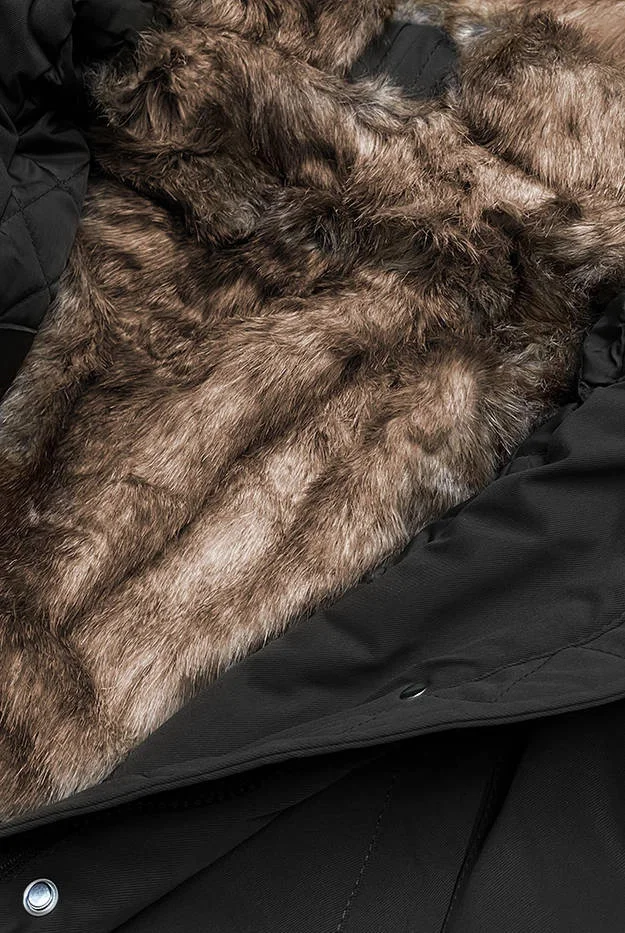 Přidání recenze k Černá dámská prošívaná zimní bunda s kožešinou (m-137)