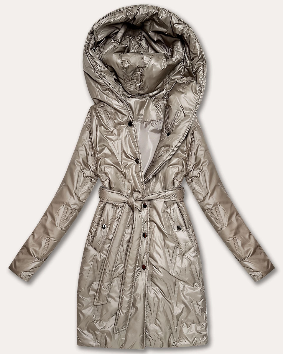 Béžový dámský prošívaný kabát s páskem S'West (B8508-12)